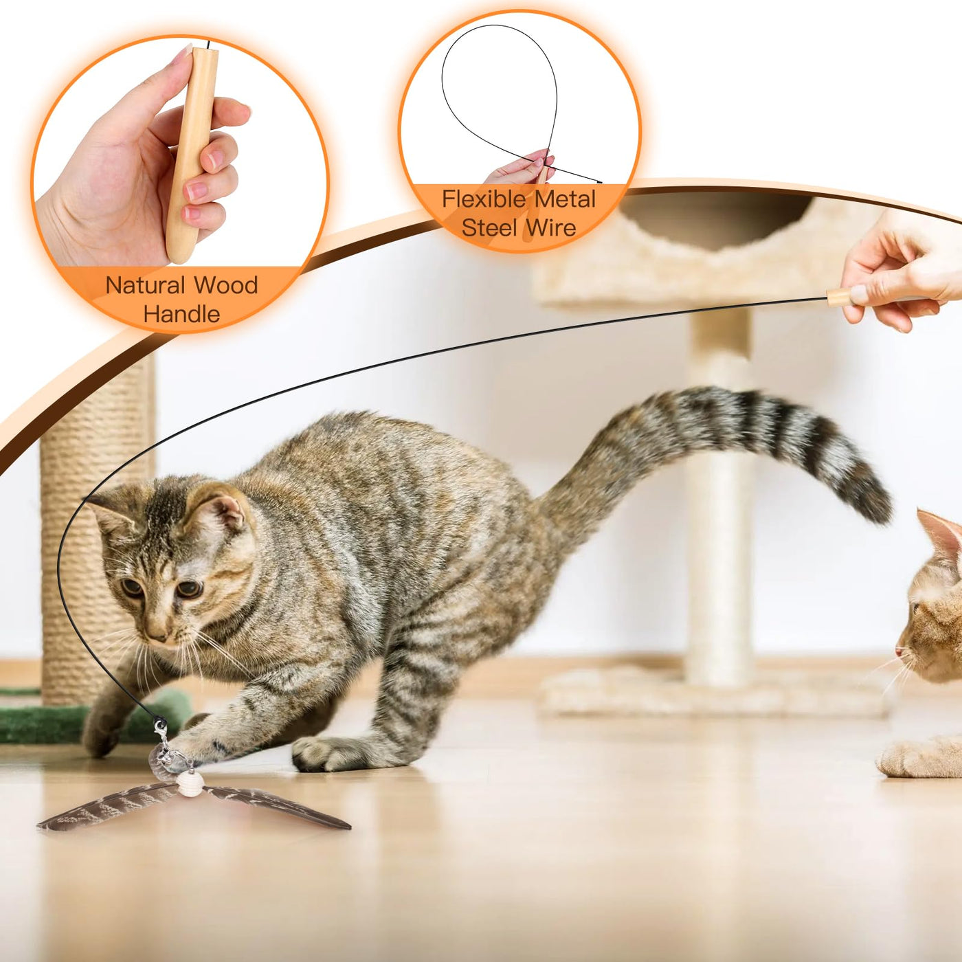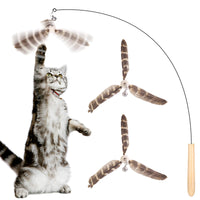 Hosfroll Cat Toys Interactive For Indoor Cats, Cat Wand Toys With 3 Feather Refills, Sturdy Wood Handle With Flexible Steel Wire