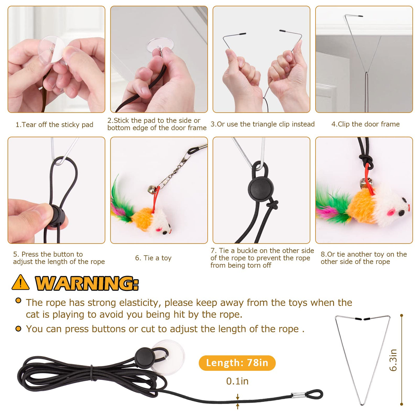 Q: How can I attract my cat to play with the toys?A: To attract your cat, install the suction cup on a wall or glass surface and adjust the feather head to a reachable height. The dangling feathers will encourage your cat to jump and chase, promoting exercise and play.