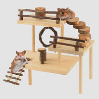 Hosukko Hamster Climbing Toys 3-Tier Extra Large Hamster Playground Natural Wooden Small Animal Platform Toys Hamster Exercise A