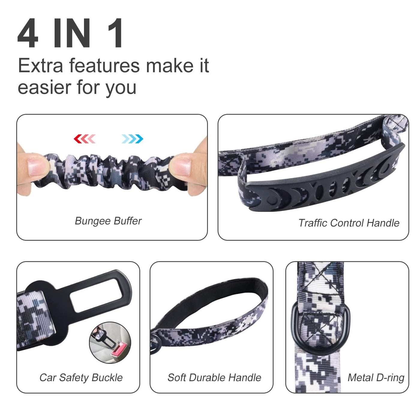 When It Comes To Your Best Friends Comfort And Safety, Compromise Is Never A Solution. We Focus On Providing Innovative And Affordable Dog Accessories Which Are Meant To Make Your Life Easier. We Make It A Rule From Working Only With Premium Materials And Trustworthy Suppliers, In Order To Meet Your High Expectations. Should You Not Be Entirely Pleased With Your Purchase, Our Customer Care Department Has Got You Covered! This Bungee Dog Leash Was Designed As A Perfect Combination Between Comfort And Functionality For Both Dog And Dog Owner. Made With Heavy Duty Anti-Chew Nylon, With Built-In Lower Traffic Handle For Enhanced Control, Main Padded Handle, Elastic Cord For Minimal Shock, Plus Heavy Duty Zinc Alloy Carabiner, This 6 Foot Dog Leash Is Suitable For Training And Everyday Walking, Providing Excellent Grip, Nighttime Safety And Superior Comfort! Still Not Convinced? Here Are Some Of The Amazing Features Of This Product: Length: 4-6 Feet; Soft Neoprene Handle; Second Handle For Traffic Control; For Medium And Large Dogs; Pulling Strength Of 150Lbs; Ideal For Safety Training; Comfortable On Your Hands, Wrists, Shoulder. Youll Fall In Love Instantly With This Premium Dog Leash!