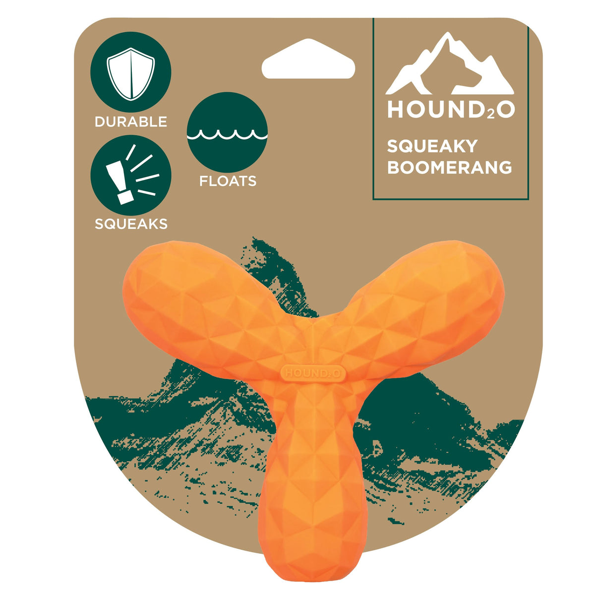 Hound2O Dog Toys - Squeaky Boomerang, Orange - Tough, Engaging, & Interactive For All Breeds- Chew, Chase, & Fetch - Durable Non
