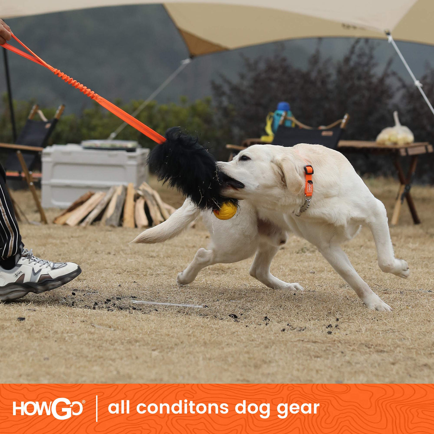 Howgo Dog Rope Toy,Dog Bungee Chaser Toy 100% Sheepskin,Sheep Smell Tug Toy For All Breeds (Orange, With Rubber Ball)