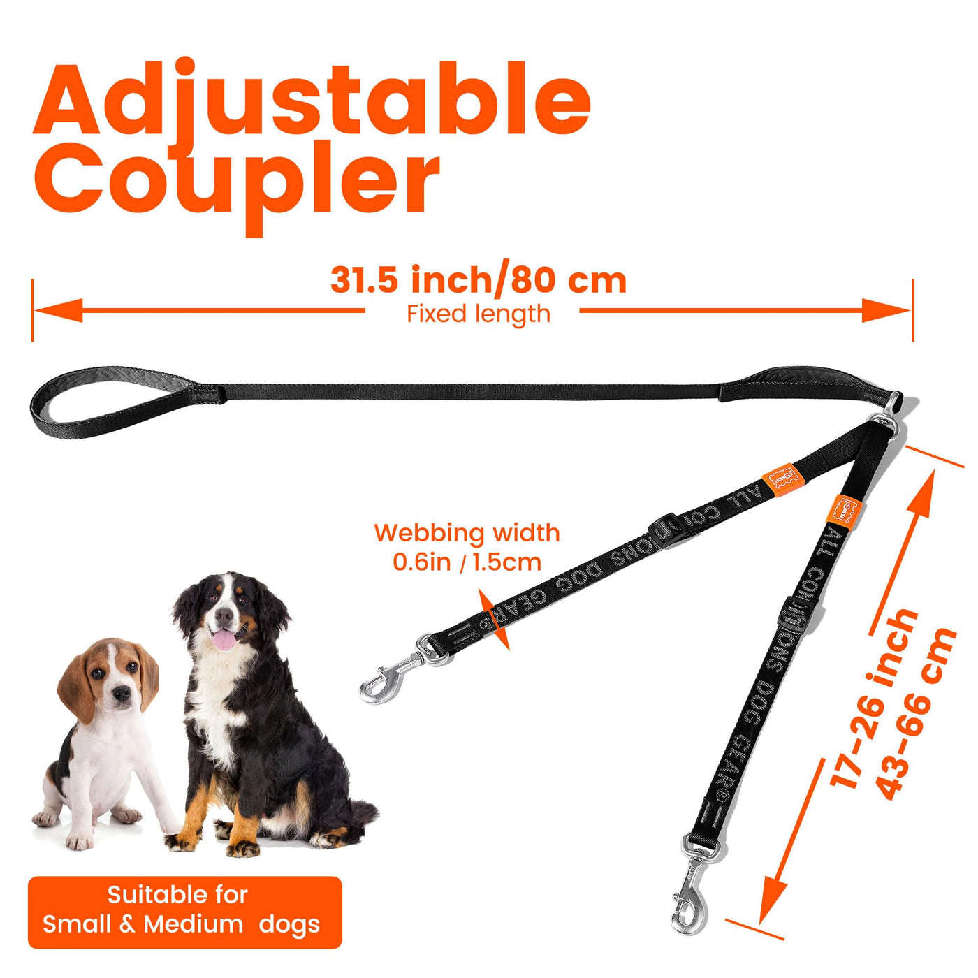 Howgo Double Dog Leash, No Tangle 360 Swivel, Adjustable Two Padded Handles, Double Clip Dog Leash Coupler Splitter For Small An