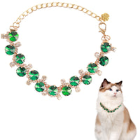 Howwfaly Dog Collar And Cat Collar Gold Chain Necklace Stainless Steel Adjustable Green Rhinestones Collar With Cute Pet Paw For