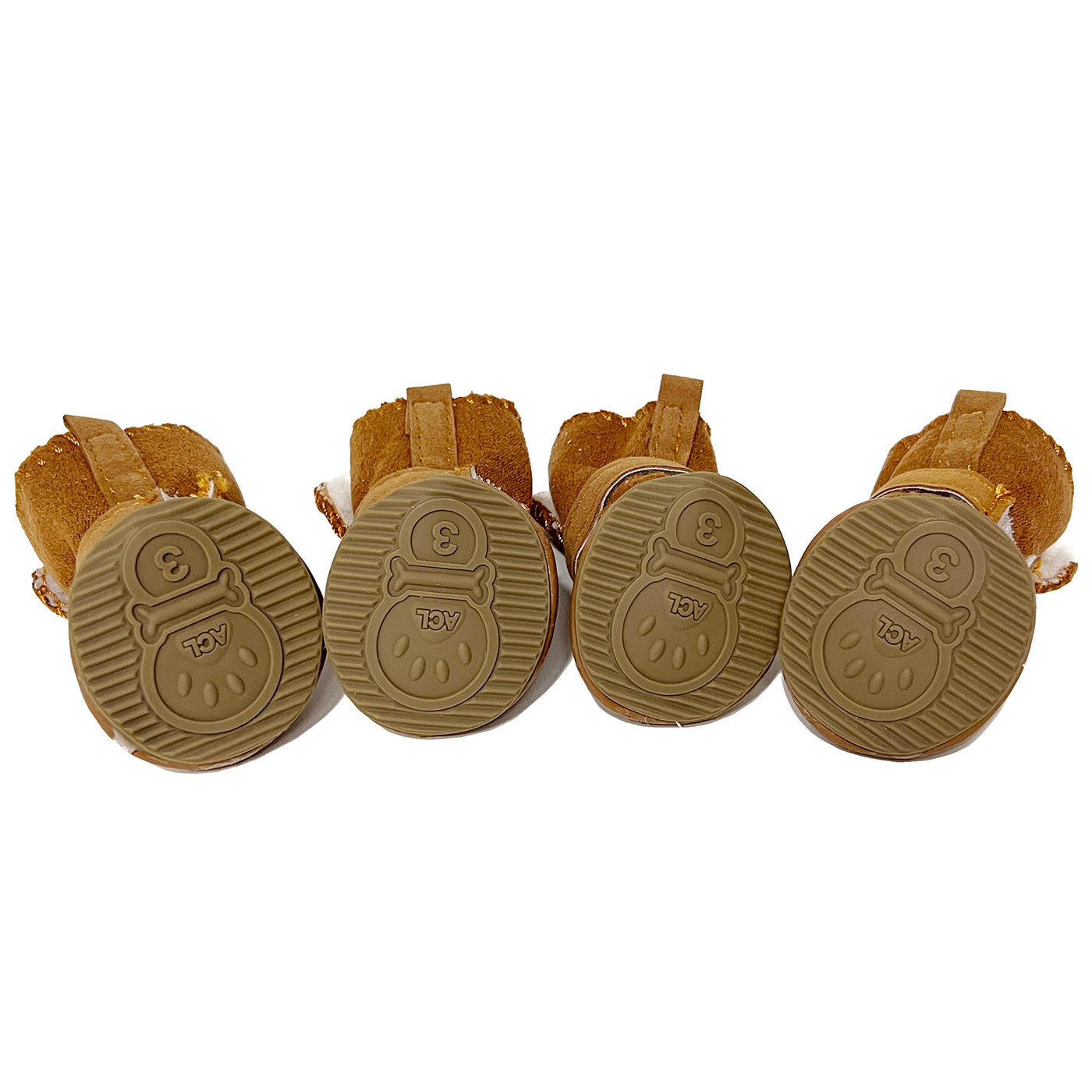 Hpwfhplf Dog Boots, Dog Shoes For Small Dogs Chihuahua, Anti-Slip Paw Protectors For Snow Winter (Brown, Size3)