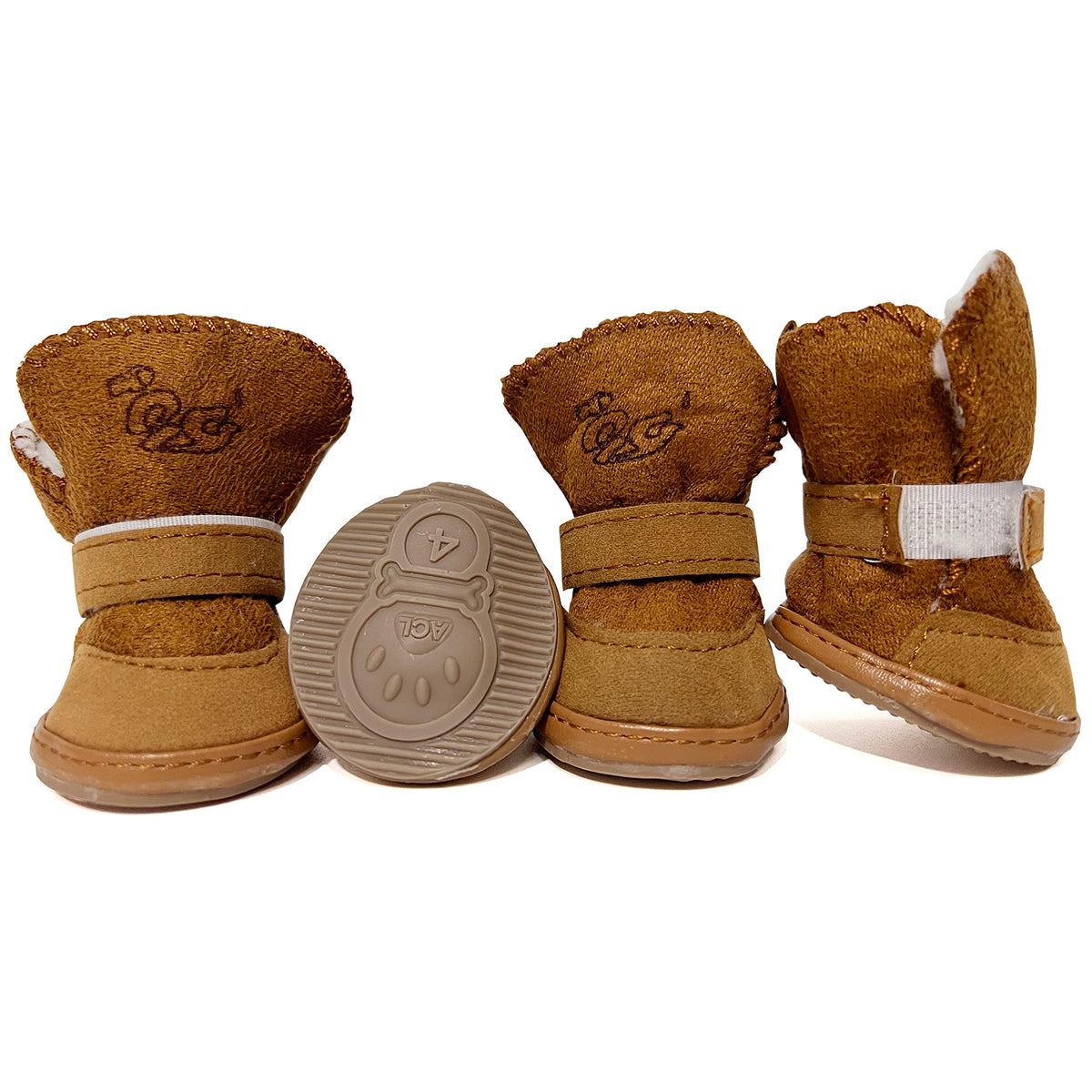 Hpwfhplf Dog Boots, Dog Shoes For Small Dogs Chihuahua, Anti-Slip Paw Protectors For Snow Winter (Brown, Size4)
