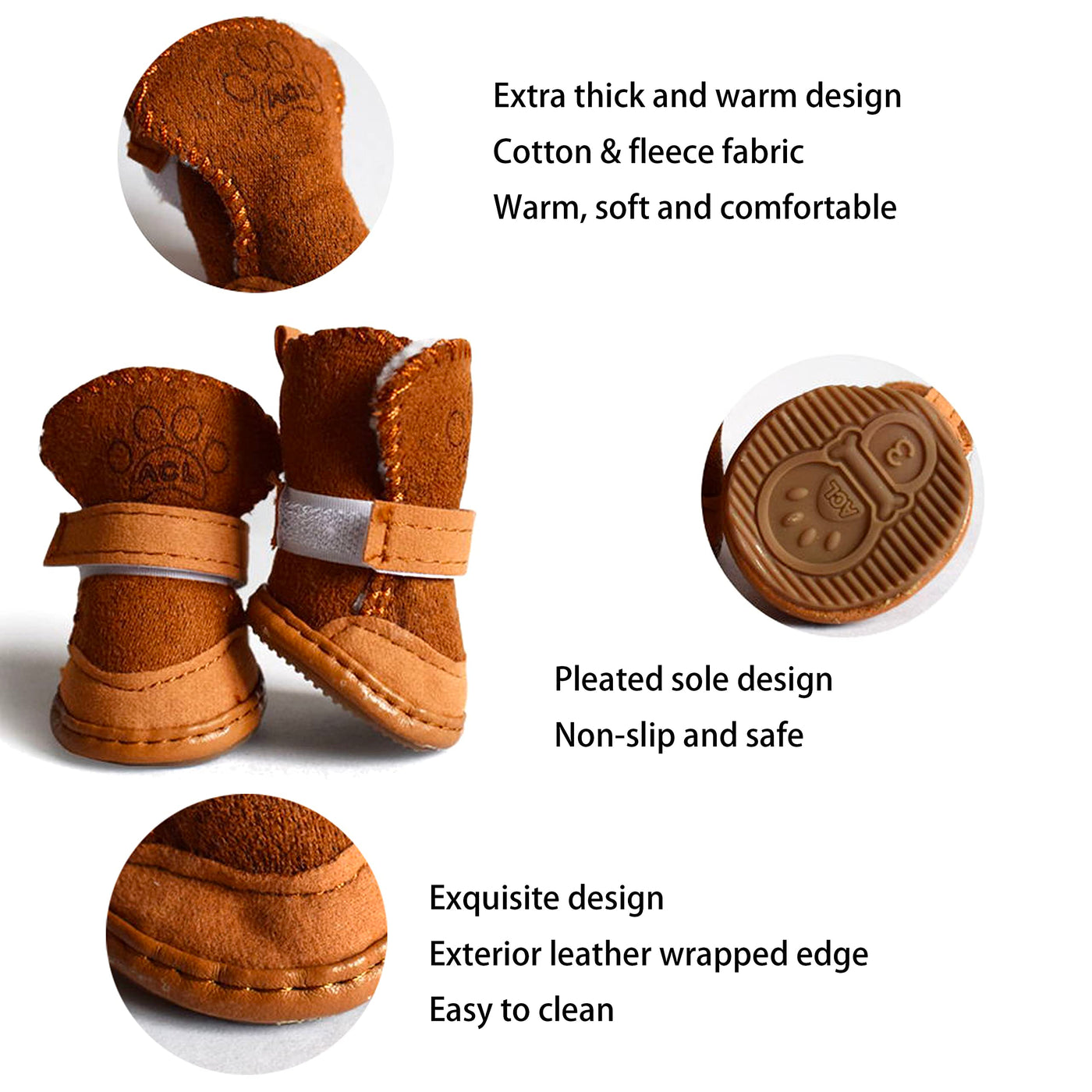 Hpwfhplf Dog Boots, Dog Shoes For Small Dogs Chihuahua, Anti-Slip Paw Protectors For Snow Winter (Brown, Size5)