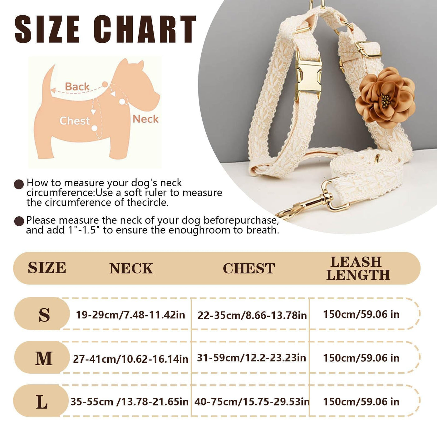 Product Name:Adjustable Dog Harness Dog Harness For Medium Dogs Female No Pull Harness For Large Dogs Dog Training Harness, Best Dog Harness For Puppies, Dog Harness For Girls, Large Dog Harness And Leash Set Dog Harness & Leash Set Dog Harness With Leash Easy Walk Dog Harness Cute Dog Harness Dog Leash Size: S Width: 2.5Cm (0.98 In) Length: 150 Cm (59.06 In) M Width: 2.5Cm (0.98 In) Length: 150 Cm (59.06 In) L Width: 2.5 Cm (0.98 In) Length: 150 Cm (59.06 In) Dog Harness Size: Width: 2.5Cm (0.98 In) Neck: 19Cm-29Cm (7.48 In-11.42 In) Bust: 22Cm-35Cm (8.66 In-13.78 In) M Width: 2.5Cm (0.98 In) Neck: 27 Cm - 41 Cm (10.62 In - 16.14 In) Bust: 31Cm-59Cm (12.2 In-23.23 In) L Width: 2.5Cm (0.98In) Neck: 35Cm-55Cm (13.78In-21.65In) Bust: 40Cm-75Cm (15.75 In-29.53 In) Flowers: Flowers Are Removable To Fit Dogs Of All Sizes, Suitable For All Four Seasons, Worn Alone Or Layered Thickly. Reminder: Please Note That Due To Lighting Effects, Monitor'S Brightness/Contrast Settings, Etc., The Color Tone Of The Website Photos And The Actual Item May Be Slightly Different.Items Measured By Hand, There May Be A Difference Of About 1-2 Cm, Your Understanding Will Be Greatly Appreciated.???