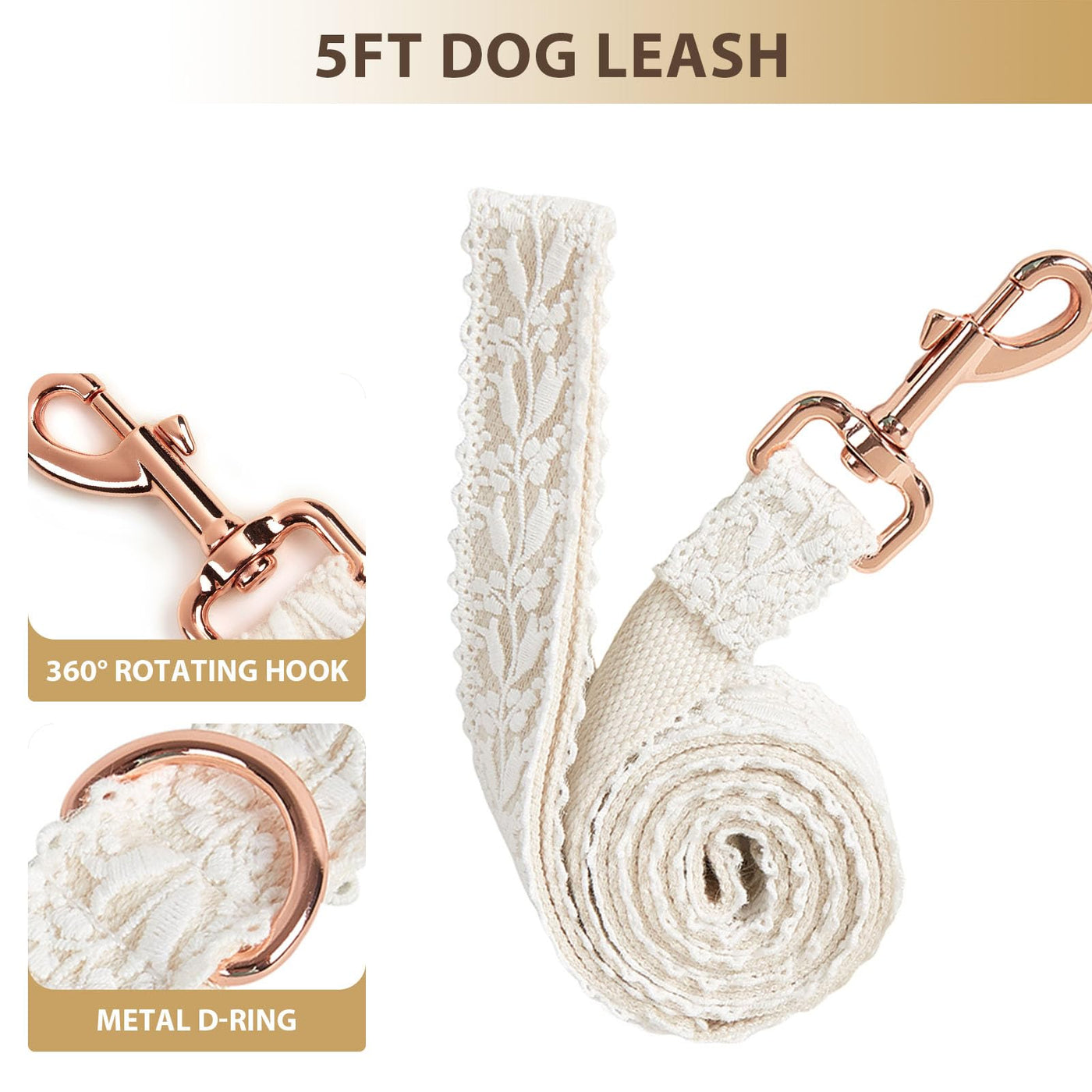 Classic Lace Dog Collar, All-Metal Accessories, More Suitable For Dogs Weighing 8 Pounds And Above. All-Metal Accessories Will Be Heavy, Which Is Not Suitable For Dogs That Are Too Small, Because Dogs Are Too Small To Bear Such A Weight. Please Read The Size Chart Carefully Before Purchasing.Puppy Gifts Elegant And Charming Flowers Make Your Pet More Charming, And Everyone Will Ask You Where To Get This Sweet Lace Dog Collar.High Quality Material - Made Of High Quality Polyester Fabric, It Will Not Hurt Your Pet'S Skin. Safety Release Buckle And Metal D-Ring Are Durable. Set: Includes Collar And Leash.Adorable Pet Collars With Floral Ornaments, Perfect For Weekend Party Outfits Or Wedding Holiday Gifts.The Perfect Gift For All Lucky Dogs, Cute Dogs, Puppies, Boys And Girls.Product Name: Dog Collar, Puppy Collar, Lace Flower Pet Collar, Dog Personalized Collar, Girl Dog Collar Material: Polyester.Season: All Seasons Type:Package Included: 1 X Pet Collar Notice: There May Be A 1-2Cm Error In Manual Measurement, Please Make Sure You Don'T Mind It Before Placing An Order. Due To The Different Positions Of The Pictures, There May Be Color Differences In The Colors, Please Understand.