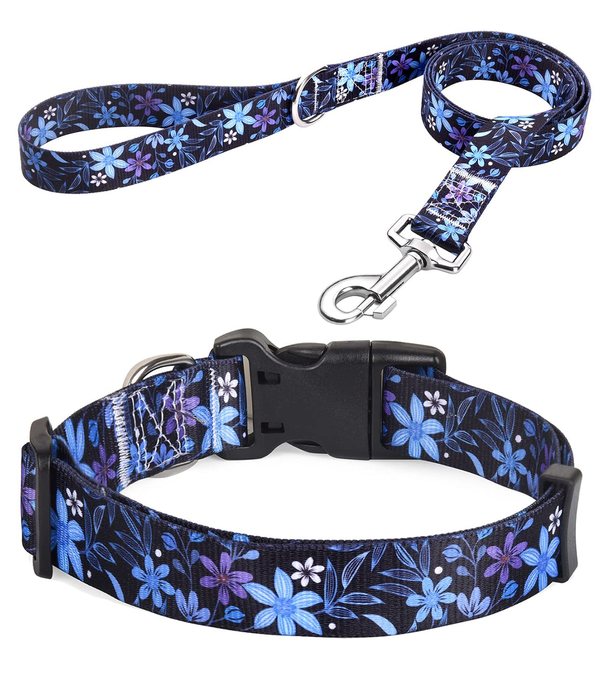 Hqyddmi Dog Collar And Leash Set For Small Dogs Cats, With Floral Print, Soft Comfortable Adjustable For Puppy Small Dogs, Floral Pattern For Girl Boy Dogs(Floral Blue Set,Xs)
