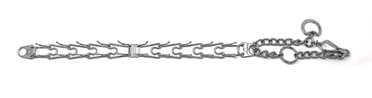 Sprenger Chrome Plated Steel Prong Collar With Quick Release Snap Is One Of The Most Recognizable And Popular Names In Obedience Training Tools. A Safe And Effective Alternative To Choker Collars, It Puts Even Pressure Around The Neck, About Every Half Inch, Pinching The Skin In A Band. This Collar Does Not Apply Direct Pressure To The Trachea, So You Can Train Your Dog With Little Or No Tugging, Jerking, Or Pulling. The Addition Of A Center Plate Connector Allows The Middle Link To Be Configured Symmetrically, Enabling The Prongs To Tighten In The Same Direction. Made Of High Quality German Steel, The Size Of This Collar Can Be Adjusted By Adding Or Removing The Links Individually. Features: Interlocking Links, Each Link Equipped With Two Blunt Prongs Slips Over Dog'S Head For Easy On, Easy Off Slightly Beveled Prong Tips Easy To Increase Or Decrease In Size. Links Sold Separately. These Collars Come In Four Sizes Small 2.25Mm X 16&Rdquo;, Medium 3Mm X 22&Rdquo;, 3.2Mm X 23&Rdquo; And 4.0 Mm X 25&Rdquo;. Sizing Instructions: Collar Should Fit Snuggly Just Below The Dog'S Ears. Please Note: Not Recommended For Light Color Dogs.