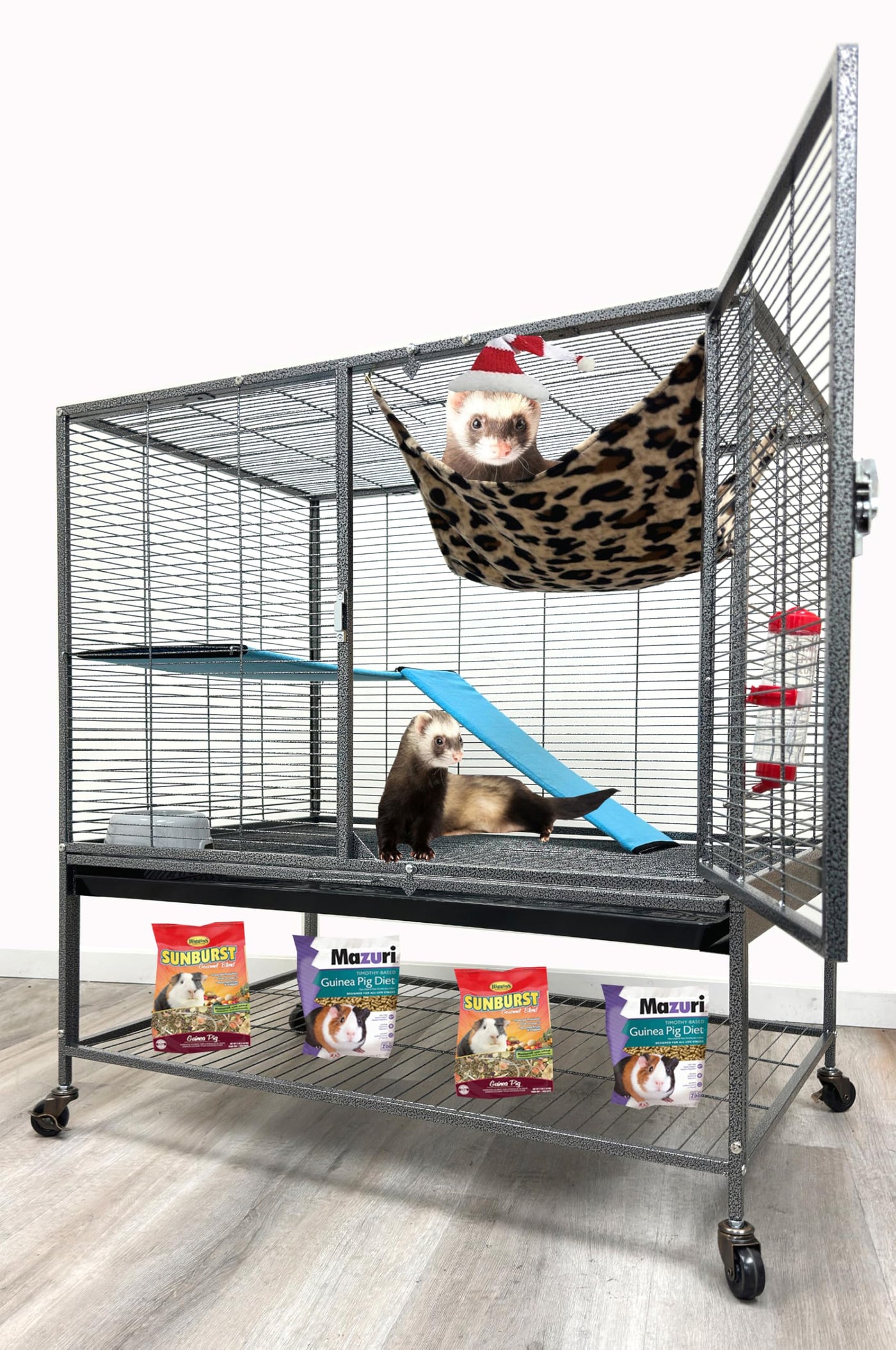 Huge 37'' L X 24'' W X 39'' H Two Tiers Tight 1/2-Inch Bar Spacing Large Front Doors For Feisty Ferret Hammock Chinchilla Rat Mo