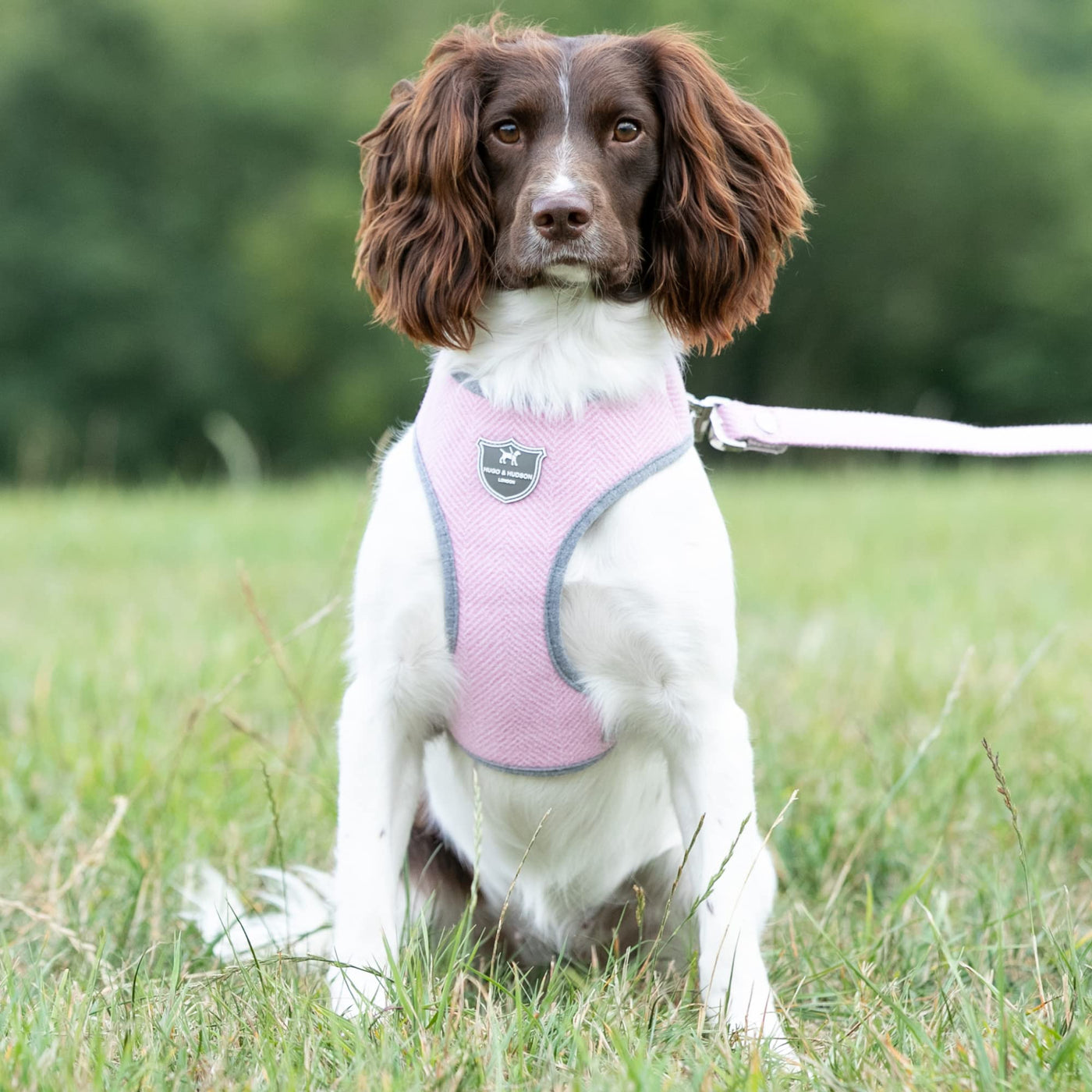 Hugo & Hudson Dog Harness, No-Pull Anti Choke Tweed Harness Vest, Pink Herringbone, L