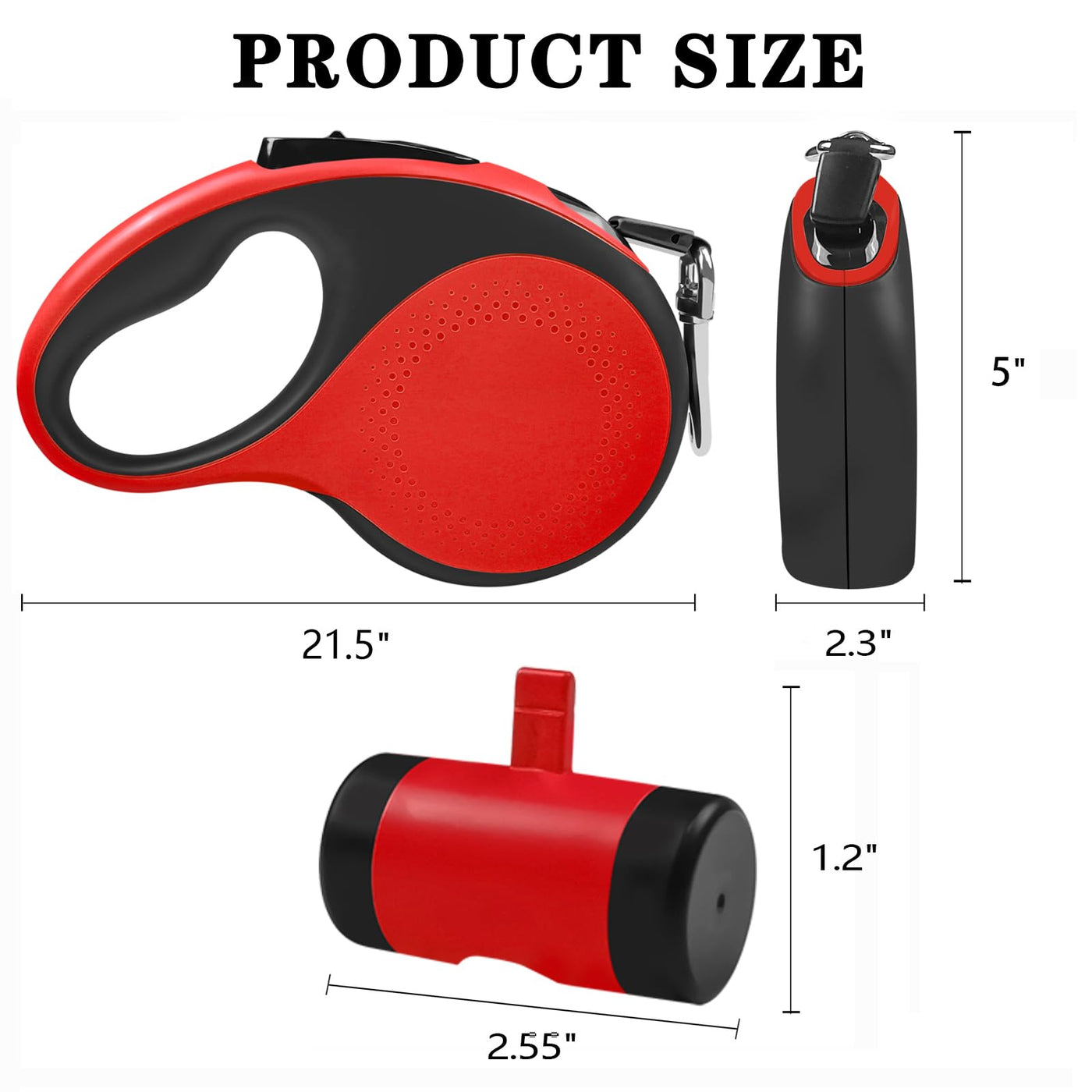 Retractable Dog Leash With Waste Bag Dispenser And Flashlight, 26Ft Dog Leash For Small Medium And Large Dogs Up To 110Lbs, One Button Break & Lock,360Tangle Free, Soft Anti Slip Grip,Red
