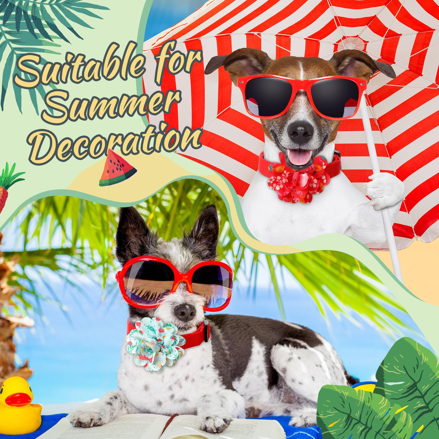 Huhumy 50 Pcs Summer Flowers for Dog Collars Bulk Hawaiian Dog Flower Collar Accessory Pet Bow Ties for Puppy Cat Grooming Charm