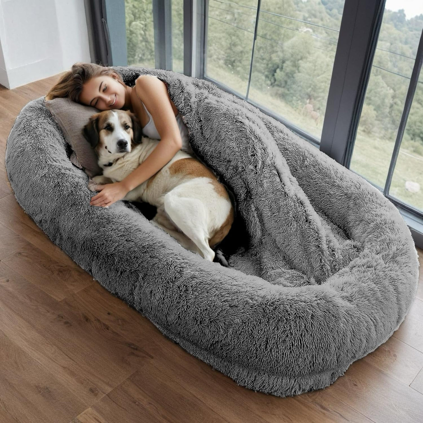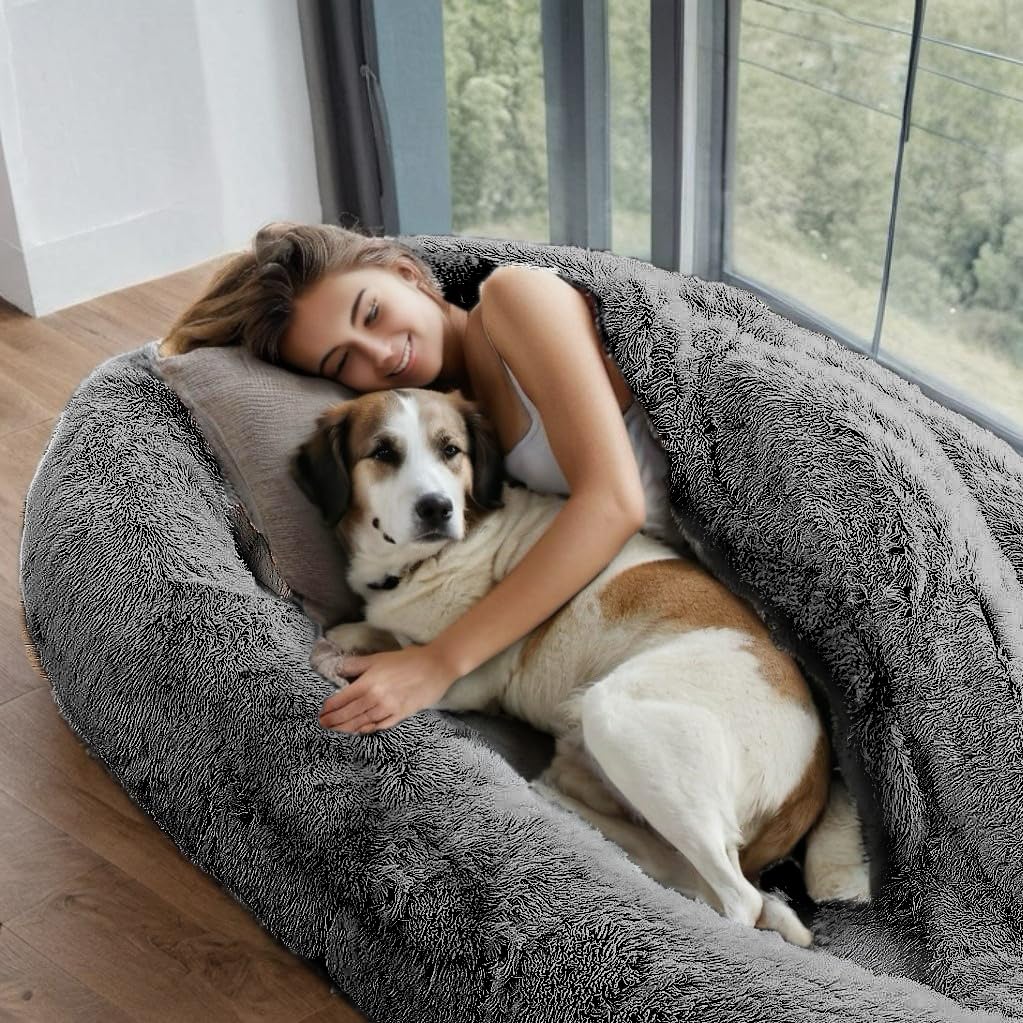 Human Dog Bed For Pet Families - Comfort And Care Seamlessly Combined Experience Unparalleled Comfort And Relaxation With Our Luxurious Human Dog Bed, Designed Specifically For Pet Families. This Bed Provides The Perfect Spot For You And Your Pet To Rest Together, Featuring High-Quality Faux Fur Cover And High-Density Foam For A Soft And Durable Touch. Its Spacious Design Is Ideal Not Only For You And Your Pet To Relax Together But Also For Use In The Living Room, Bedroom, Office, And Even Outdoors. Our Human Dog Bed Is Not Only Stylish But Also Highly Functional. Side Handles Make It Easy To Transport, And The Integrated Storage Pocket Keeps Your Essentials Close By. Whether You'Re Reading, Watching Tv, Or Enjoying An Outdoor Picnic, This Bed Offers The Perfect Spot For Relaxation. The Ergonomically Designed High-Density Foam Mattress Provides Superior Support And Pressure Relief, Helping To Alleviate Shoulder And Neck Pain, Leg And Back Pain, While Reducing Stress And Anxiety. The Thick Bolster Sides Support Your Head, Neck, And Back, Enhancing Overall Comfort And Ensuring A Peaceful Resting Experience Every Time. The Non-Slip Rubber Bottom Ensures That The Bed Stays Securely In Place On Any Surface, Preventing Unwanted Movement And Ensuring Safety For You And Your Pet. The Waterproof Cover Protects The Foam From Spills And Accidents, Keeping The Bed Fresh And Hygienic. The Zippered Cover Is Easily Removable And Machine Washable, Making Cleaning A Breeze. Whether At Home Or Outdoors, Our Human Dog Bed Provides A Cozy, Comfortable Resting Space For You And Your Pet. Let Our Luxurious Human Dog Bed Add More Comfort And Joy To Your Life.