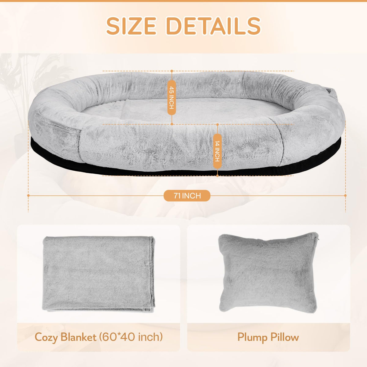 ?Human Sized Dog Bed?With Overall Dimensions Of 71 X 45 X 14 Inchesis Large Human Dog Bed Is Not Just Deisgned For An Excellent Place To Sleep Or Rejuvenate A Nap, But A Ideal Choice For Shared Moments With Your Family And Pets.