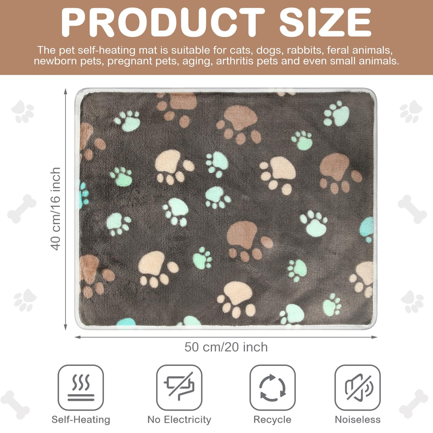 Features: The Reliable Material Adopt In The Self Heating Pet Mat Can Reflect The Pet Own Body Temperature, Without The Need For Electricity, And Safely Provide Heat For Your Pet. The Surface Is Gentle On Noses And Paws, Delivering Nice Nestling Comfort For Furry Cuddlers. Keep Your Pet Toasty During The Cold Winter Months With Self Heating Pet Mat! Specifications: Material: Soft Fluffy Fabric Color: As Pictures Shown Size: 16 X 20 Inches/ 40 X 50 Cm Style: Dog Paw Package Includes: 2 X Self Heating Pet Pads Notes: Manual Measurement, Please Allow Slight Errors On Size. The Color May Exist A Slight Difference Due To Different Screen Displays. Small Items Are Included, Please Keep Them Away From Pets In Case Of Choking Risk. Before Purchase, Confirm Whether The Product Size Is Suitable For Your Pet, And Observe The Pet'S Reaction When Using. Please Remove The Product In Time If There Is Any Discomfort.