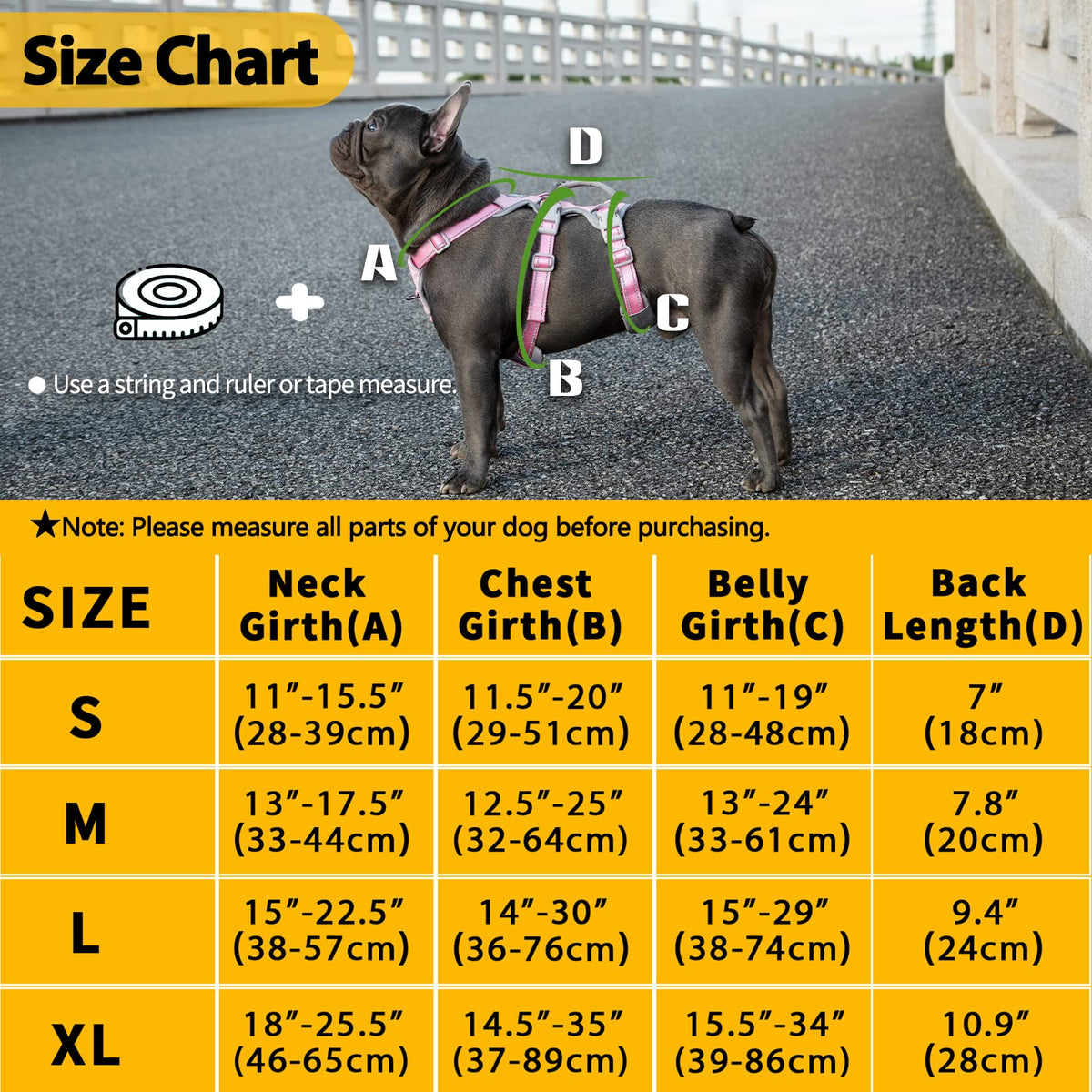Huntboo Escape Proof Dog Harness - Every adventure is worth exploring with your furry friend! Our escape-proof dog harness is made with premium quality and fully reflective nylon fabrics, durable and breathable mesh,front and back 2 sturdy metal D-ring leash clips, and a padded handle. You will never be worried about the safety of your dog and get better control of your escape artist. Our no-escape harness can help you bring back confidence when walking your dog day and night. The shining color of our anti-escape harness can make your dog the coolest boy/girl in the neighborhood. It is the perfect dog gear for daily walking, training, hiking, or any outdoor activities. Secure the Insecure! We know being a pet parent is not that easy, and that's why we are committed to bringing nothing but joy to you and your pets. We use our research and technology advantages to develop products that can help you better understand and communicate with your pet. With Huntdoo dog harness, our exploration with furry friends could be a complete joy!