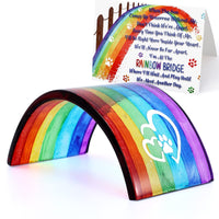 Huray Rayho Rainbow Bridge Fused Glass 3D Colorful Bridge With Sympathy Card Memorial Gift For Dog Cat Guinea Pig Lover Pet Lost Present Sorry Gift Set Of 2