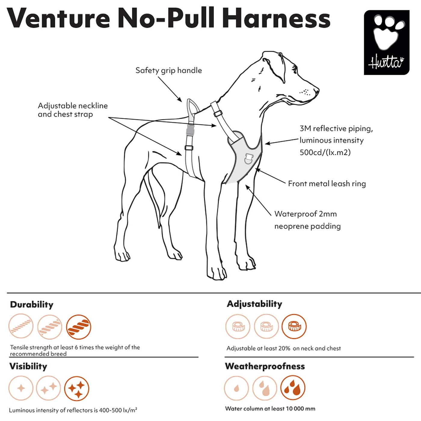 Some dogs need a little extra help learning leash behavior and that can be challenging for dogs and dog owners. The Venture No- Pull Harness can lend a gentle hand. Built with strain-relief in mind, this thoughtfully designed harness helps to minimize strain when your dog pulls away by gently restricting the force of the pull and redirecting your dog’s movement toward the leash. The top section of the harness also features a rugged loop handle that offers even more control of your dog when needed. Praise and rewards, such as a treat when your dog stops or slows down, can also help with teaching leash behavior. The Venture No-Pull Harness is suitable for daily walks and weekend adventures and it’s perfect for active and mobile dogs and dog owners. Two snap buckles on the adjustable chest section offer easy on-off wearability. There is also additional adjustability at the neckline to ensure a snug fit across a variety of breeds and sizes. Plus, there is a tag for you to write your contact info inside the harness in the event you leave the harness behind on an adventure. Thanks to its comfort, adjustability and enhanced features, the Hurtta Venture No-Pull Harness has everything dogs and dog owners want and need in a harness – and more.