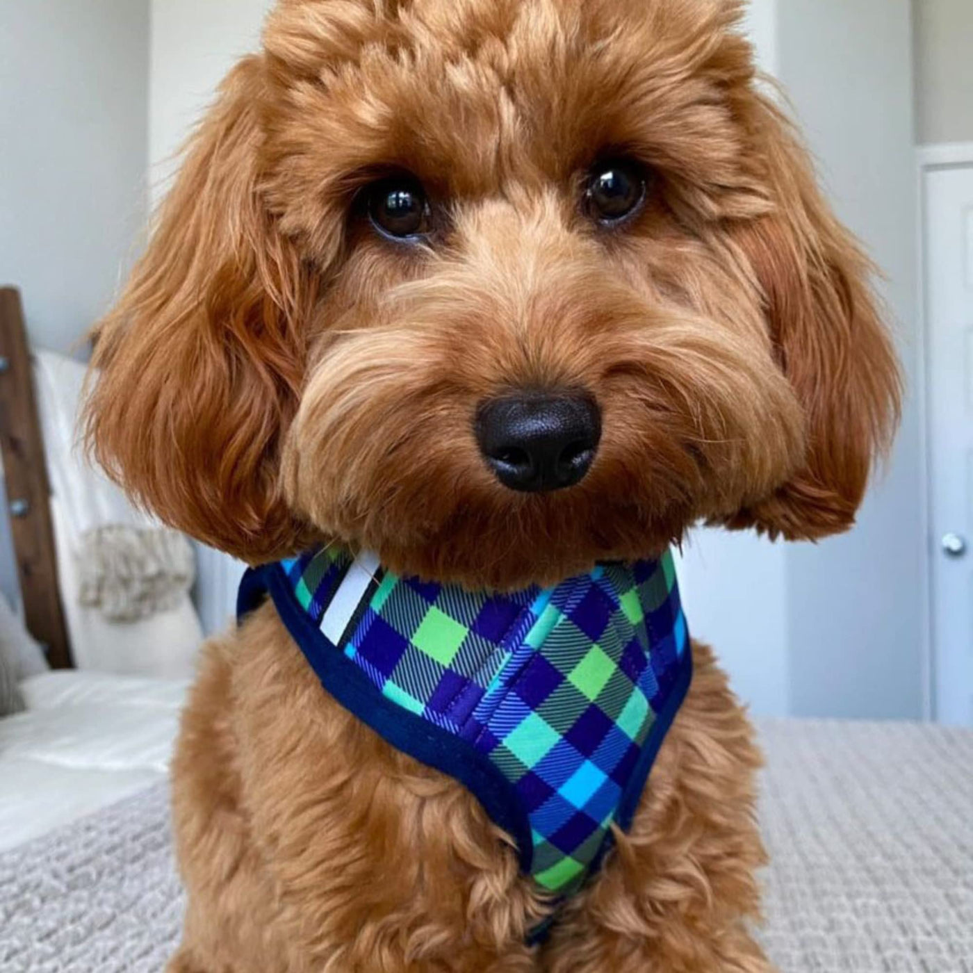 Huxley & Kent Hudson Walking & Training Harness - Blue/Green Check (Large, 22-35Lbs) - Easy Control Step-In Mesh Vest Harness Wi