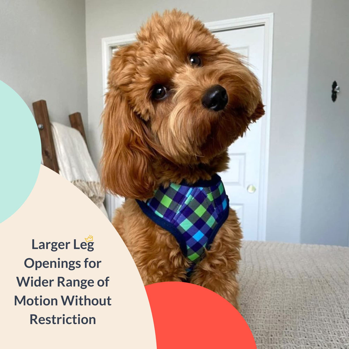 Huxley & Kent Hudson Walking & Training Harness - Blue/Green Check (Medium, 15-22Lbs) - Easy Control Step-In Mesh Vest Harness W