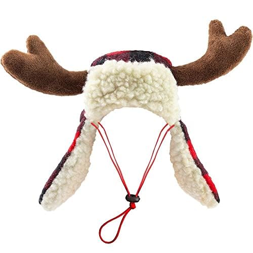 Huxley & Kent Pet Hat | Antler Buffalo Check (Extra-Large) | Festive Christmas Holiday Accessory For Dogs/Cats | Holiday Pet Hat