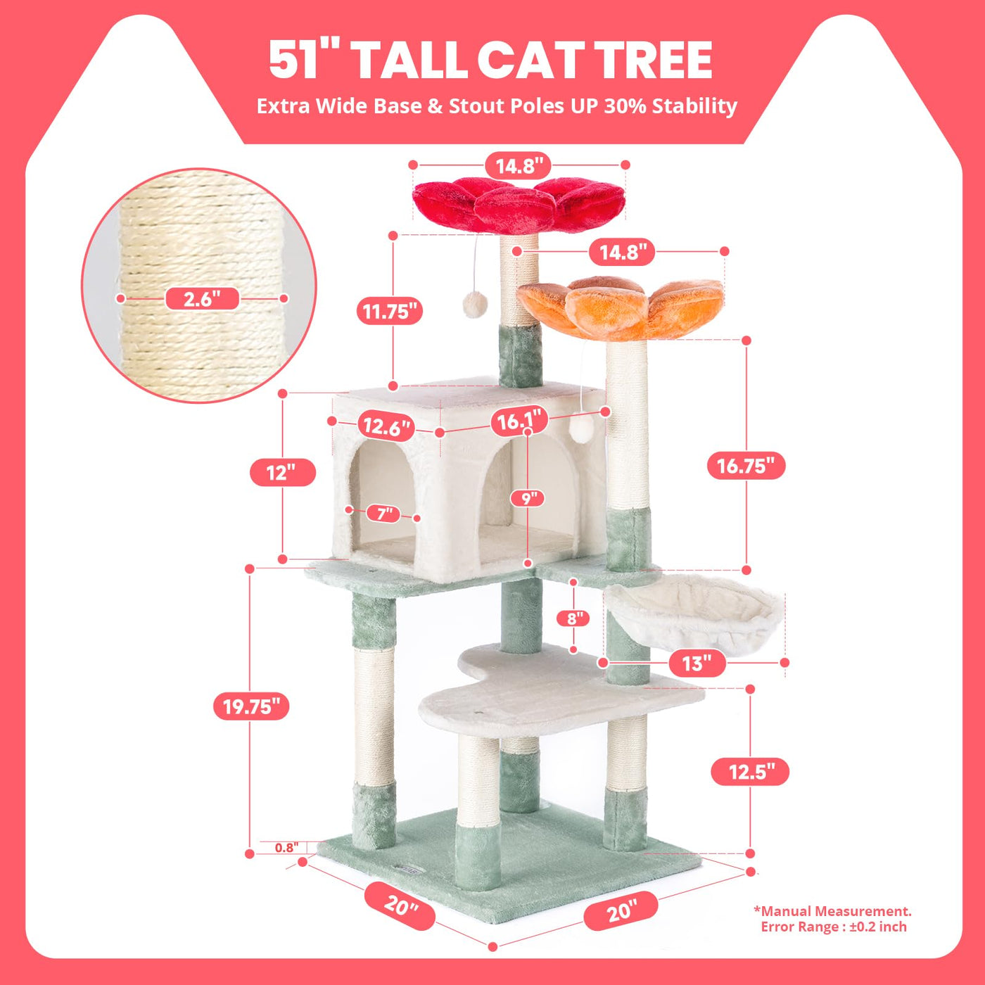 ??Cute and fashionable design: the lovely flower full of design sence. The whole cat tree not only brings cats enjoyment but also will be the highlight of your home decoration.