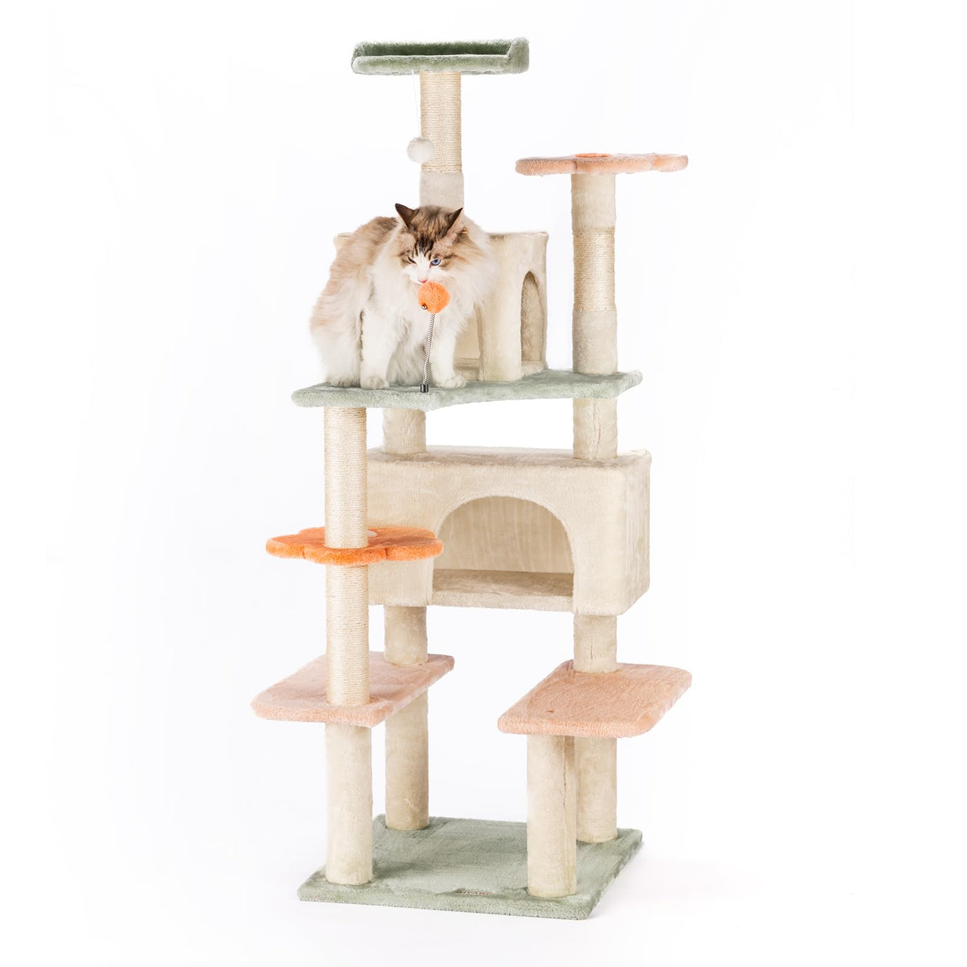 Hyabi 59 Inch Flower Cat Tree Tower Condo Multi-Level Furniture Apartment Plush Amusement Platform With Scratch Posts Toy Ball Pet House Play For Indoor Cats Large Adult