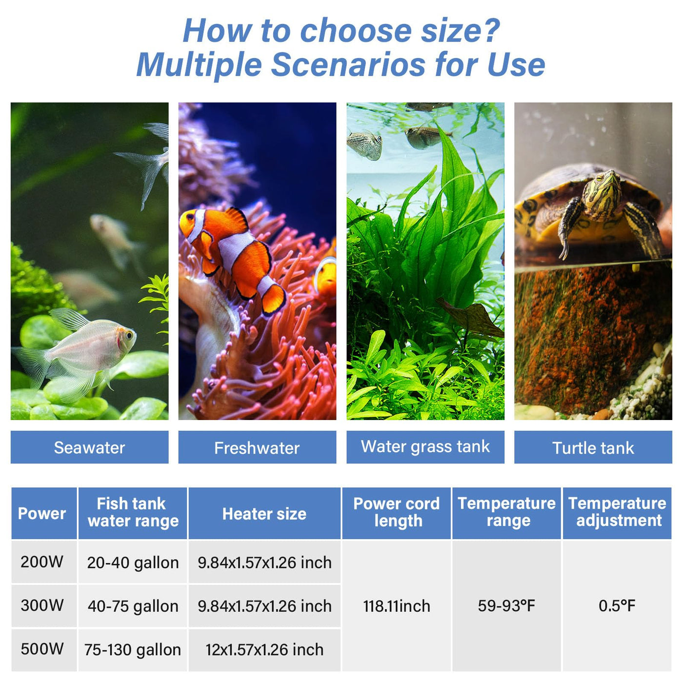 hygger 200w Aquarium Heater, Submersible Fish Tank Heater with Intelligent Temperature Control and Leaving Water Automatically S