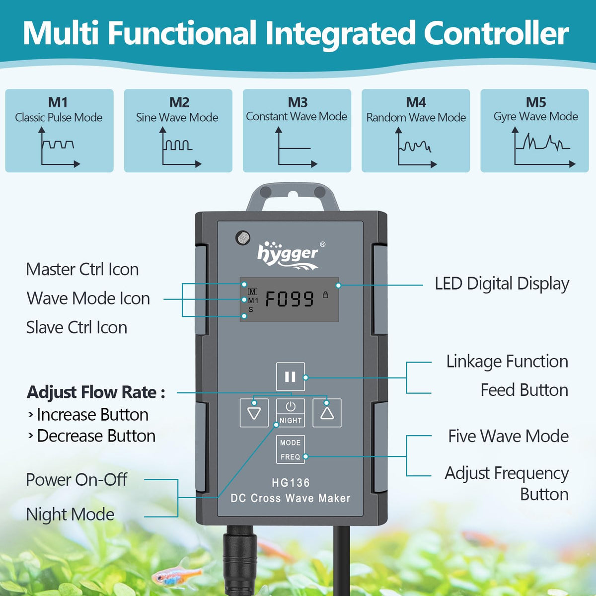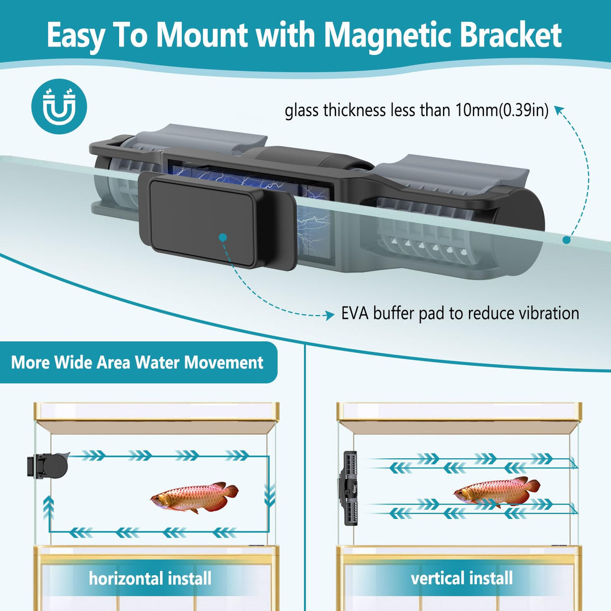 hygger Aquarium Gyre Wave Maker 1850GPH for 40-125 Gallon Fish Tank Cross-Flow Pump Adjustable Aquarium Water Circulation Powerh