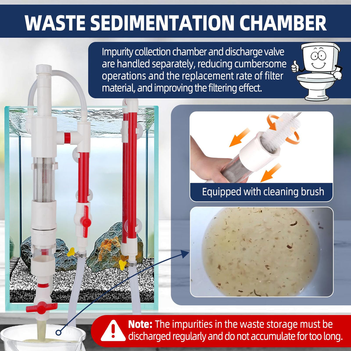No Drilling Is Required And The Sump Tank Is For Ease Of Use. The Fish Waste Collector Must Be Equipped With A Sump Tank During Operation. The Fish Waste Collector Is Equipped With An Oil Film Remover- Removal Of Water Surface Oil Film. Separation Of Fish Waste For Efficient Disposal And Discharge, Reducing Filter Sponge Cleaning Time.