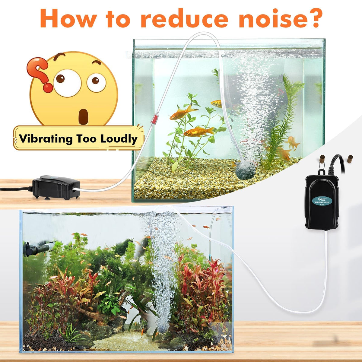 Q: How noisy is the hygger Mini Aquarium Air Pump during operation?A: This air pump operates at a noise level of less than 35dB, ensuring quiet performance that won't disturb your home environment.