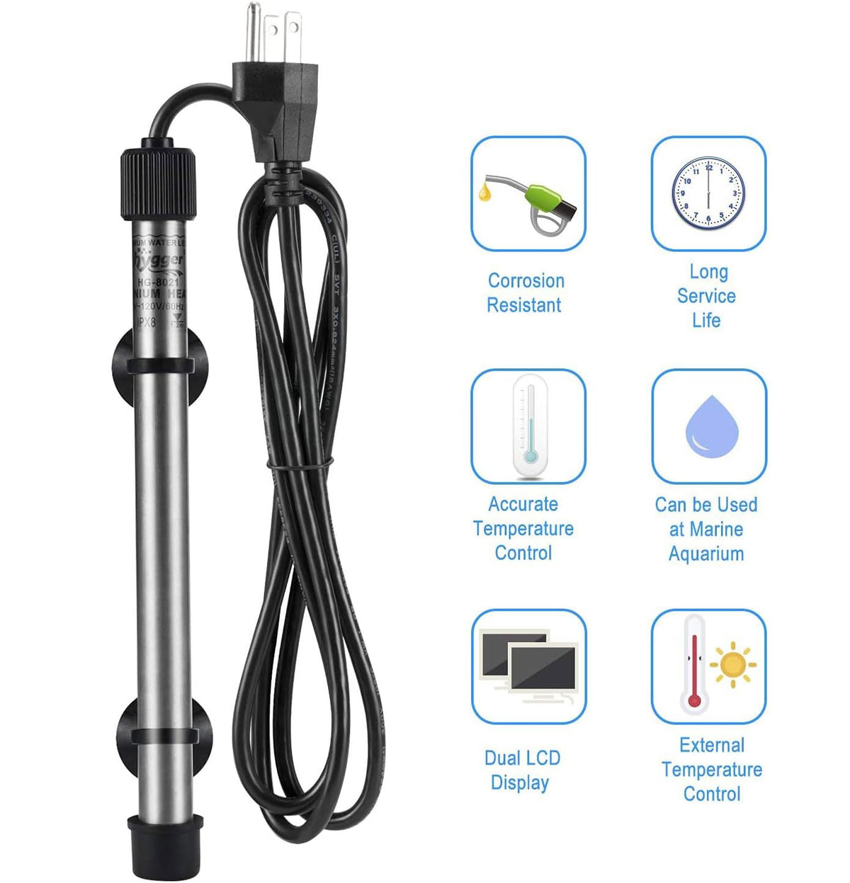 Hygger Pinpoint Saltwater Aquarium Heater With Digital Thermostat Ic Temp Controller, Titanium Tube Submersible Fish Tank Heater For Coral Reef 100 Watt