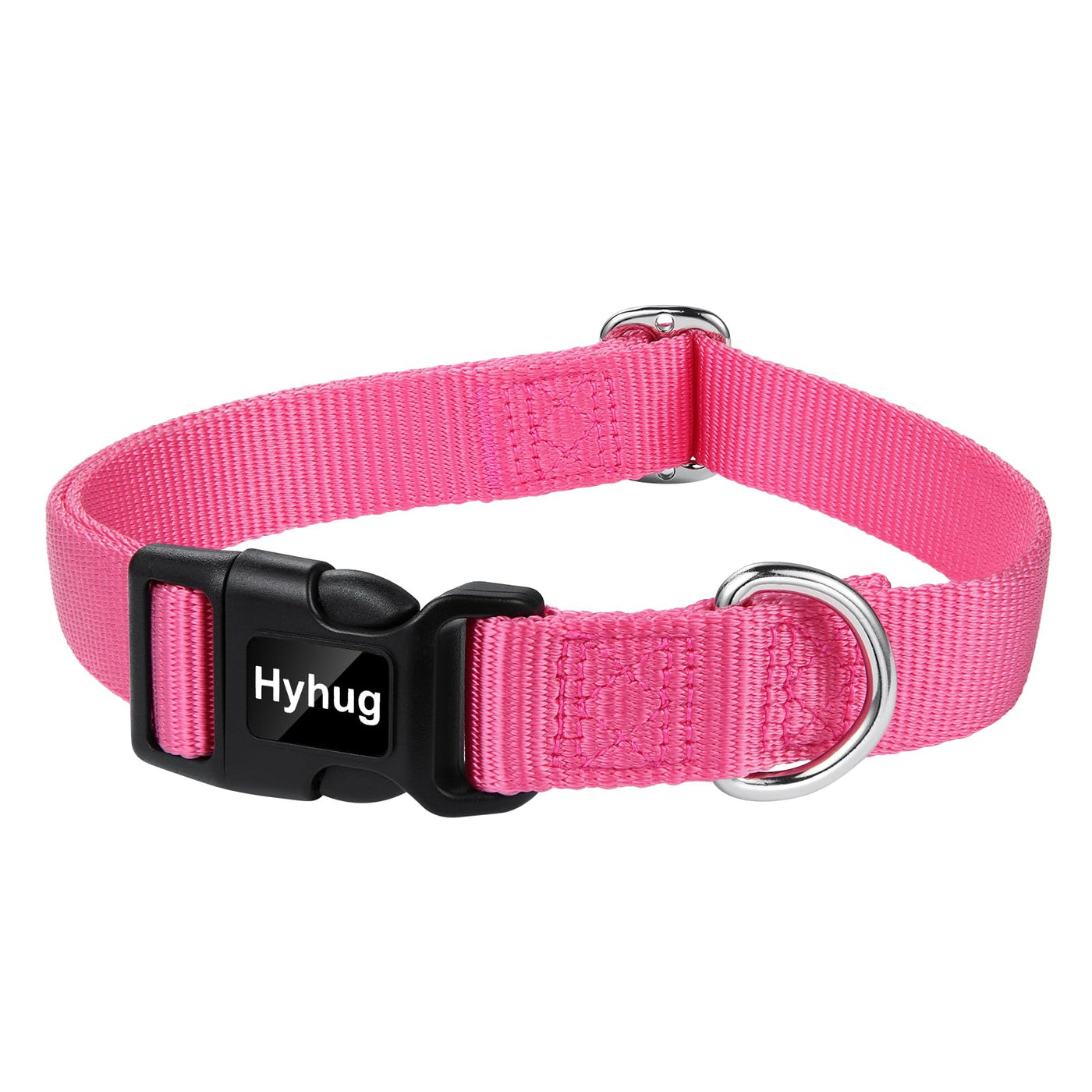 Hyhug Dog Collar With Quick Release Buckle, Nylon Adjustable Sturdy Cute Dog Collars For Large Dogs (Candy Pink, Large)