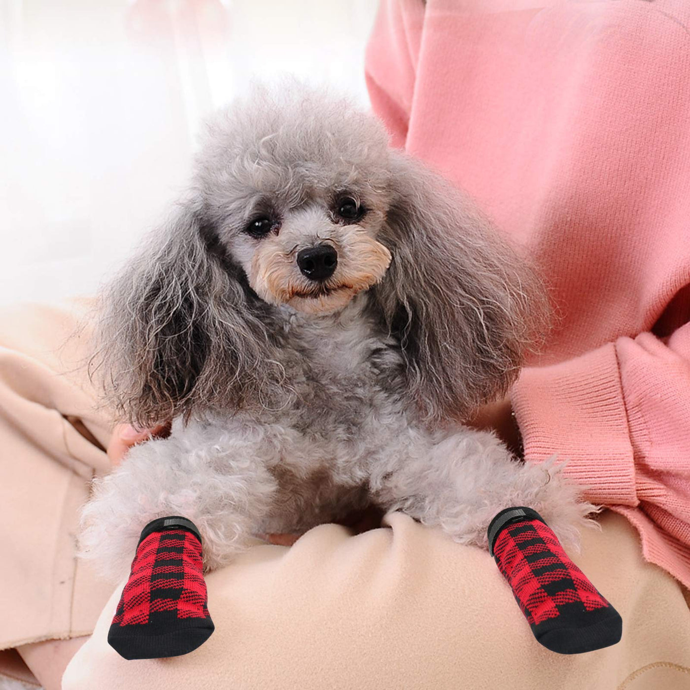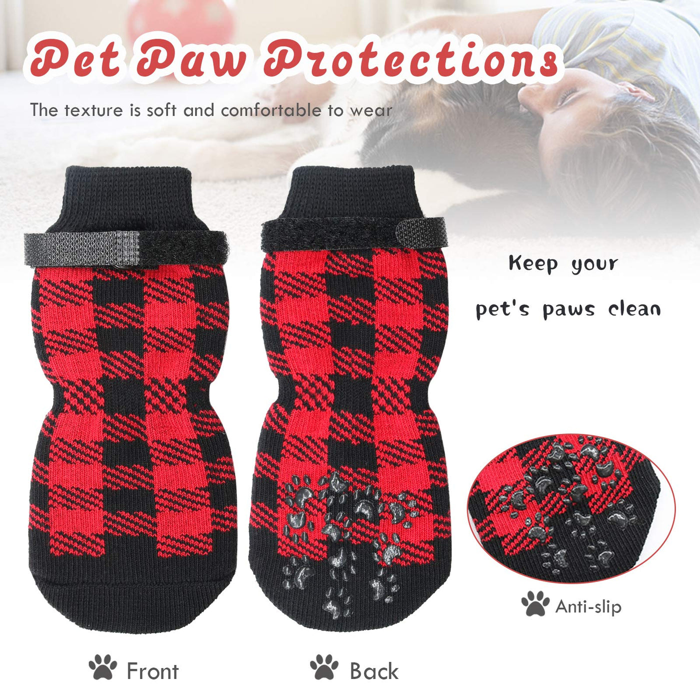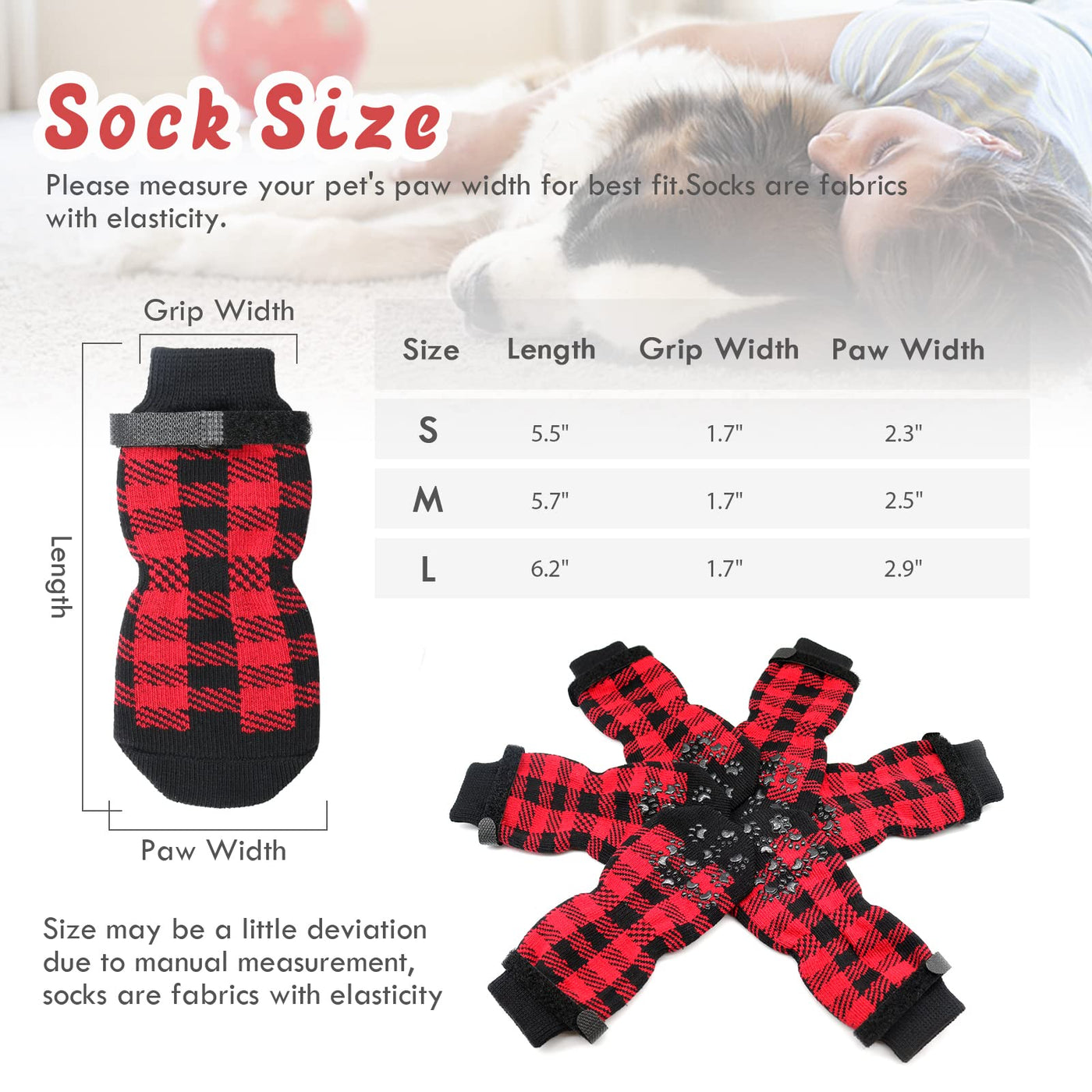 -These dog knitted socks are elastic, it's recommended to select the smaller ones if the size is in between two sizes. - These anti-slip socks are design to protect your dog's safety while your pet is walking or running on the hardwood floor. - The hook and loop are designed for adjusting the size and fixing the socks stay on the paw better. -Please feel free to contact us if you have any questions. We are always here for you!