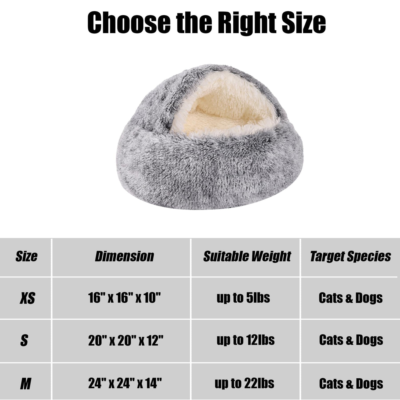 Hyq Small Dog Bed With Cover Cave, Cat Beds For Indoor Cats Washable, Cozy Cat Cave Bed, Round Puppy Bed With Hooded Cover, Dog