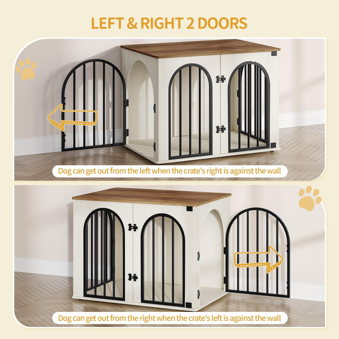 Specifications: Color: White Brown Material: Engineered Wood, Metal Product Dimensions:26.8L x 19.3W x 22.0H Product Weight: 30.9 lb Package Contents: 1 x Dog Crate Furniture 1 x Assembly Bag 1 x Instructions