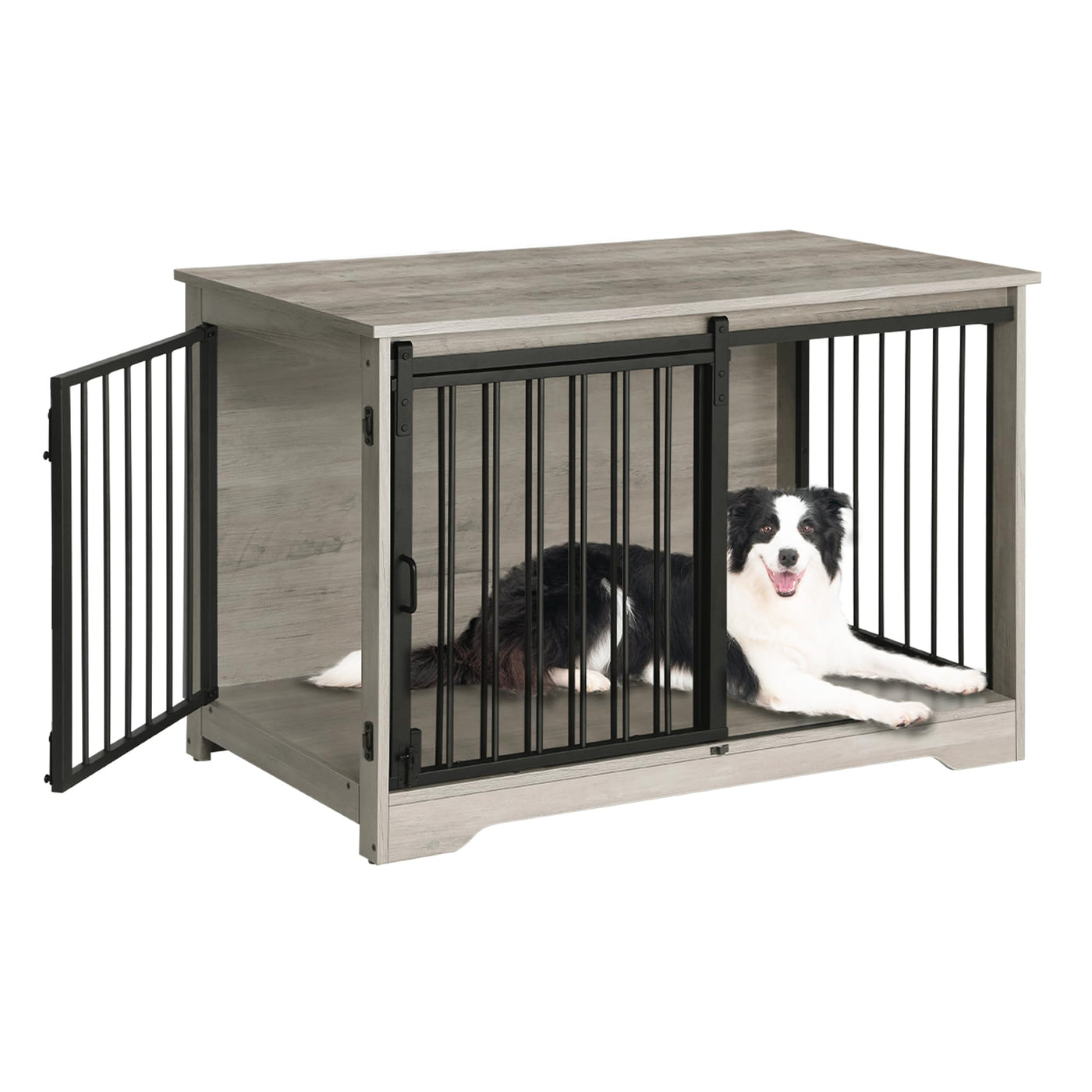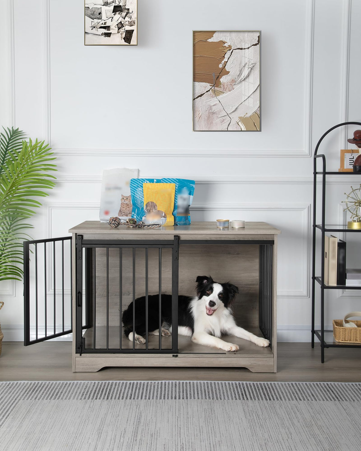 Hzuaneri 39.4 Heavy Duty Dog Crate Furniture with Barn Door, Wood Indoor Dog Crate Kennel for Small/Medium/Large Dogs, End Side