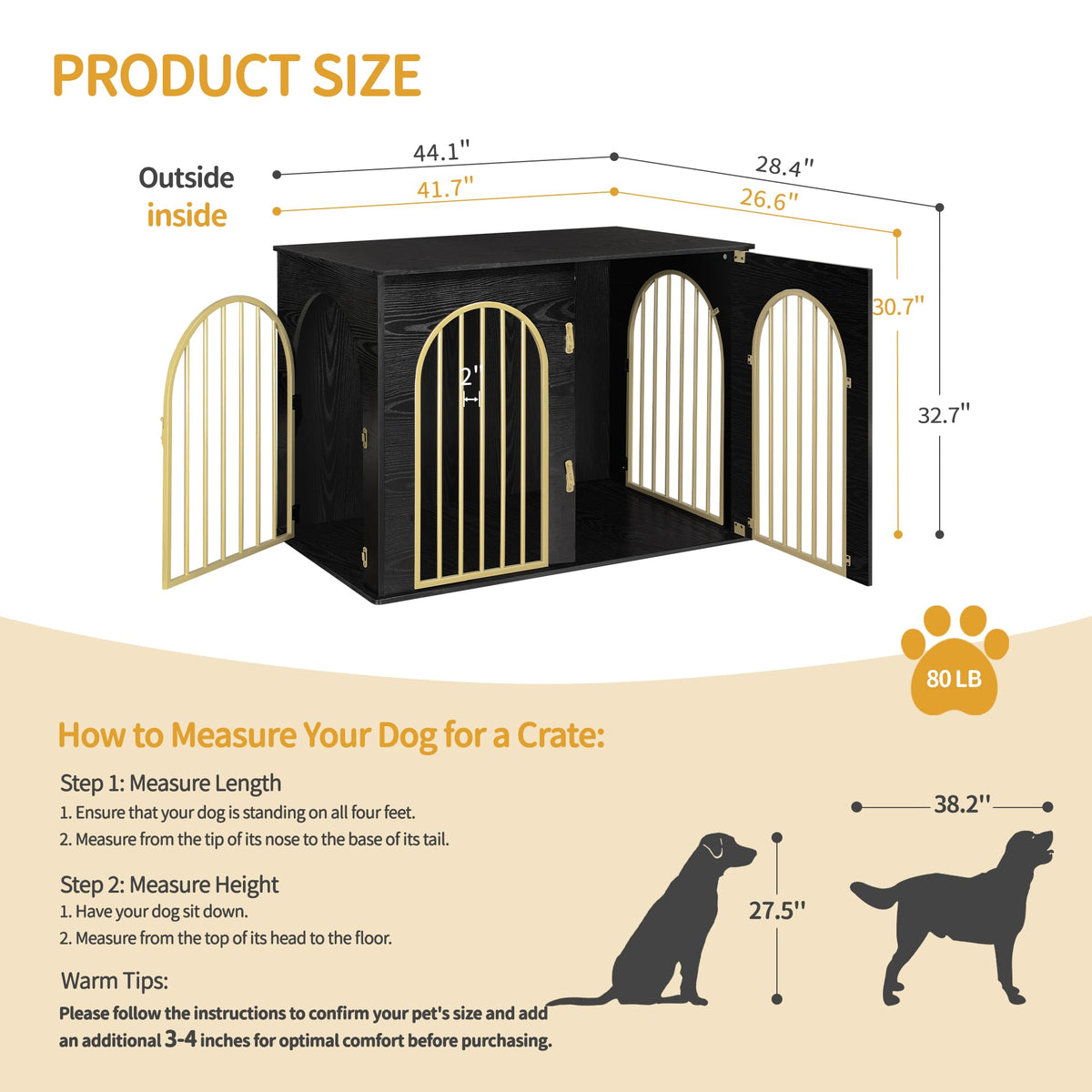 Product Description: Why Choose Hzuaneri Dog Crate Furniture? ? Arched Door Shape: Arches as a classic and elegant design element can add beauty and artistic atmosphere to an interior. Furniture in modern or traditional styles can complement arches ? Large Platform: The top has an excellent load-bearing capacity of 220 lb, which meets the storage needs of various daily items! ? Superior Materials: Our wooden dog crate is made of superior engineered wood and steel. Steel is stronger than wire, and the dog crate is chew-resistant, wear-resistant, scratch-resistant and easy to clean ? Easy to Assemble:Easy-to-follow assembly instructions are included in the package, each component of the wooden dog crate is carefully labeled with a serial number and packed in a sturdy box with thick foam and wood boards for maximum protection, usually, two adults can easily assemble it together within 40-50 minutes