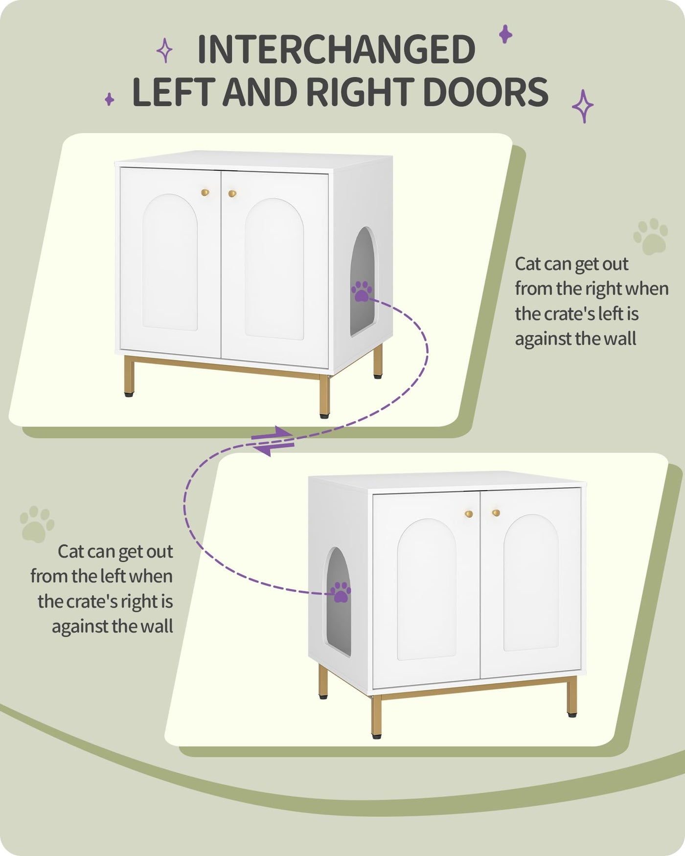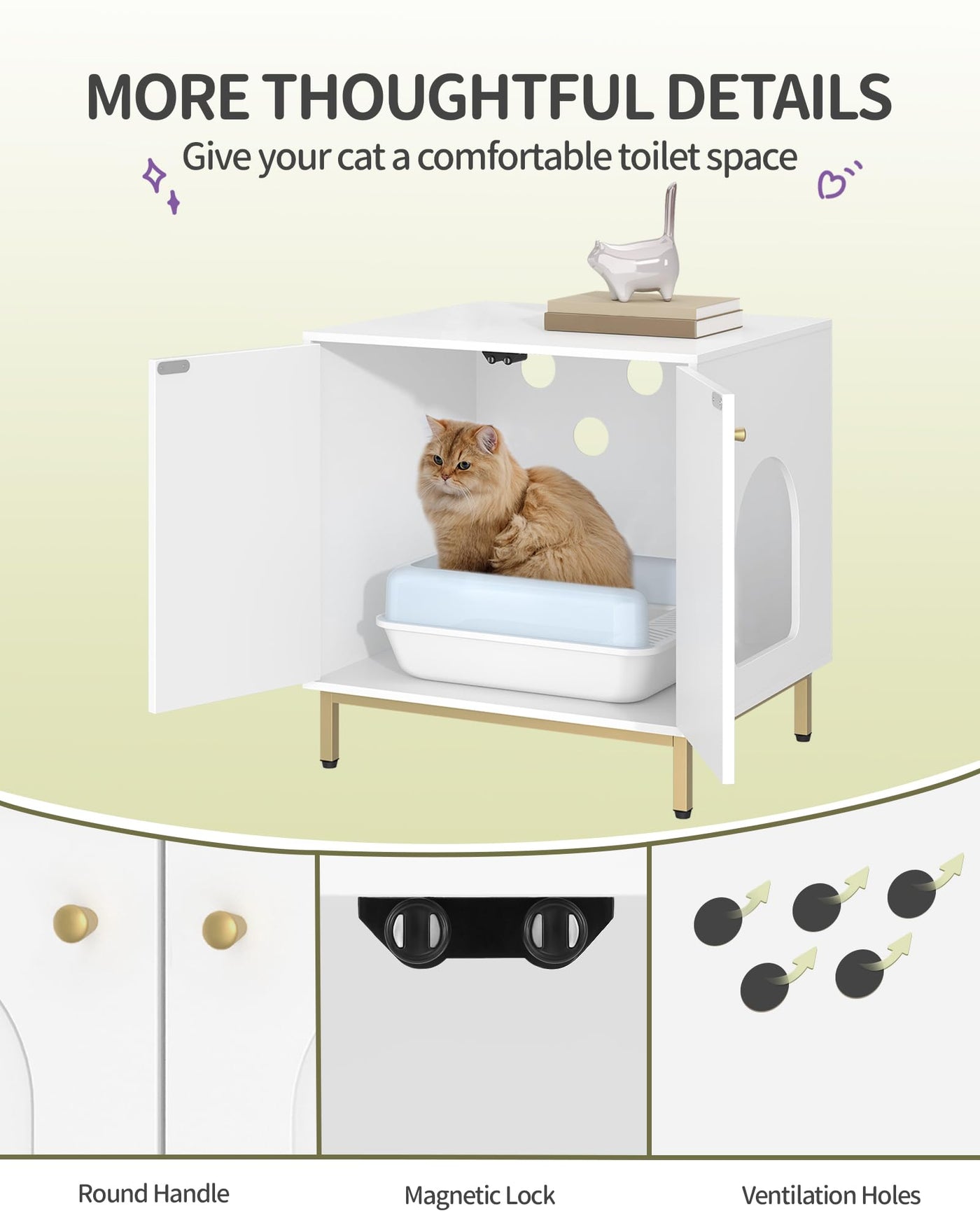 Specifications: Color: White And Gold Material: Particleboard And Steel Product Size: 19.7 D X 23.6 W X 24 H (50 X 60 X 61 Cm) Total Weight: 28.7 Lb ( 13 Kg) Max. Static Load Of Each Shelf: 132Lb ( 60 Kg) Package Contents: 1 X Litter Box Enclosure 1 X Accessory Bag 1 X Assembly Instructions Hzuaneri Notes: Children Are Not Allowed To Climb On Or Play With The Product. For Indoor Use Only.