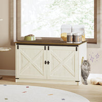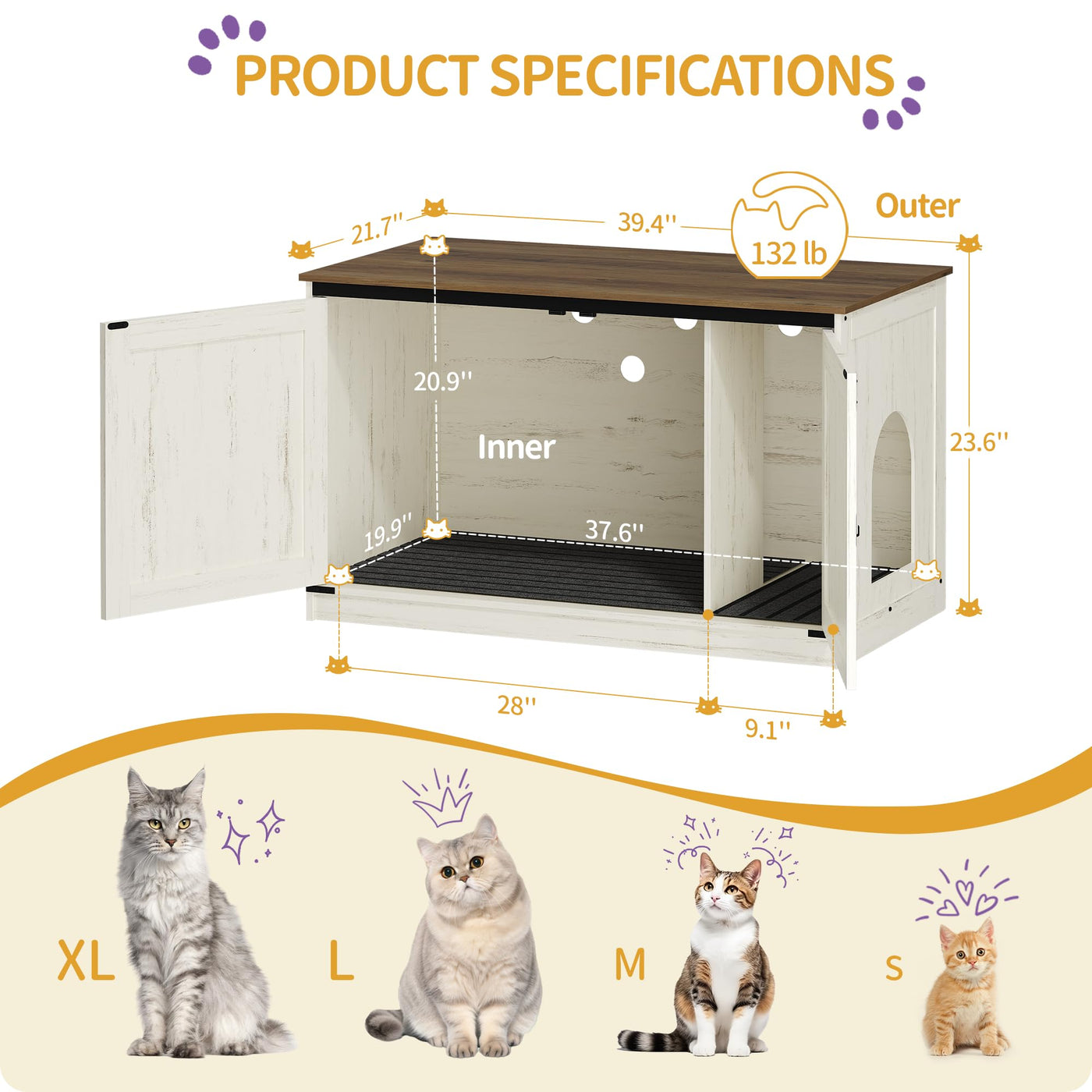 Specifications: Color: White And Brown Material: Particle Board Product Size: 39.4 X 21.7 X 23.6 Inches (100 X 55 X 60 Cm) Product Weight: 41.6 Lbs (18.9 Kg) Max.Static Load Capacity Of The Top (With The Inner Divider): 100 Ib (45 Kg) Max. Static Load Capacity Of The Top (Without The Inner Divider): 30 Ib (13.6 Kg) Package Contents: 1 X Litter Box Enclosure 1 X Accessory Kit 1 X Instruction Manual Hzuaneri Notes: Do Not Step On Or Sit On The Product.