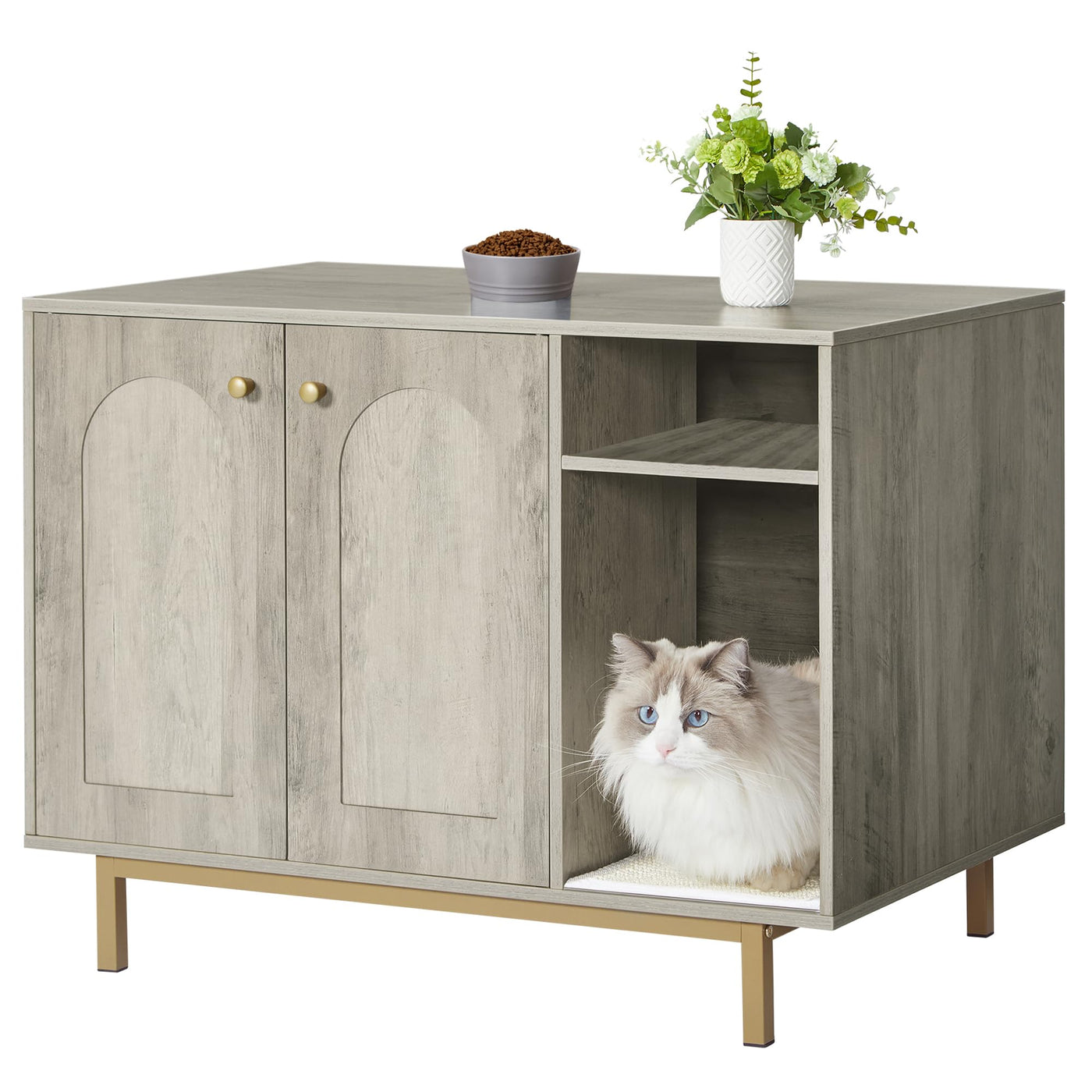 Specifications: - Color: Greige And Gold - Material: Particleboard And Steel - Product Size: 19.6 D X 31.4 W X 24 H (50 X 80 X 61 Cm) - Total Weight: 38.06 ( 17.3Kg) - Max. Static Load Of Each Shelf: 132Lb ( 60Kg) Package Contents: - 1 X Litter Box Enclosure - 1 X Accessory Bag - 1 X Assembly Instructions Hzuaneri Notes: - Children Are Not Allowed To Climb On Or Play With The Product. - For Indoor Use Only.