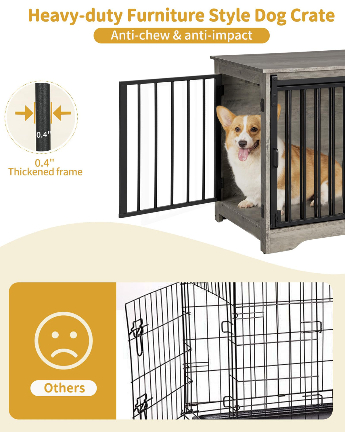Hzuaneri Dog Crate Furniture, 32 Double Door Dog Crate with Barn Door, Dog Kennel Indoor, End Side Table Wooden Dog Crates for S