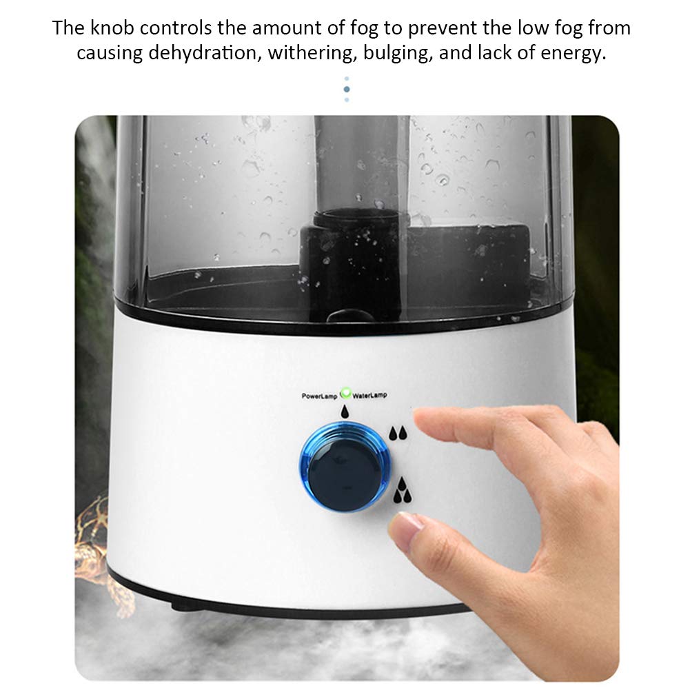 Description: 1.Humidify: Simulate Rainfall In The Natural Environment And Effectively Increase The Humidity Of The Breeding Environment. 2.Mute: Silent Humidification, Will Not Disturb Your Pet'S Sleep. 3.Telescopic Hose: It Can Be Bent And Stretched At Will According To Actual Needs, Easy To Use. 4.Knob Control: The Knob Controls The Amount Of Fog To Stop The Low Fog From Causing Dehydration, Withering, Bulging, And Lack Of Energy. 5. 4L Large Capacity: Large Capacity Design, No Need To Add Water Frequently. 6.Security Protection: When The Water Tank Is Short Of Water, The Power Will Be Automatically Turn Off To Avoid Potential Security Hazards. Specification: Material: Abs Color: Black, Clear Size(Approx): 15.5*32Cm/6.1*12.6Inch Capacity: 4L Plug: Us, Uk, Eu Adjustable Length Of Hose: 40-160Cm/15.75*62.99Inch Rated Power: 25W Rated Voltage: 220V 50Hz Package: 1 Pc X Humidifier 1 Pc X Tube 2 Pcs X Sucker