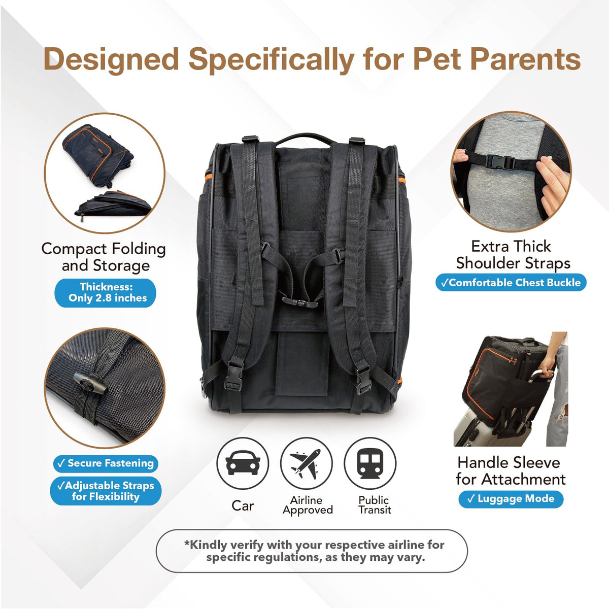Travel With Your Pet Effortlessly Using Ibiyaya'S Jetpaw All-In-One Pet Carrier Stroller. This All-Purpose Pet Stroller Changes Into An Expandable Pet Carrier, Airline-Approved Backpack For Dogs And Cats, Or Luxury Pet Stroller, Suitable For Different Situations. It Has A Special Stretch-Out Feature For More Room, Ideal For Pets That Need Extra Space To Stretch. The Sturdy Stroller Frame Is Constructed From Durable Materials Within A Lightweight Alloy Structure, Ensuring Stability And Comfort For Your Pet. Designed For Convenience, It Boasts A One-Hand Folding Mechanism, A Collapsible Design For Easy Storage, And A Spacious, User-Friendly Entryway.