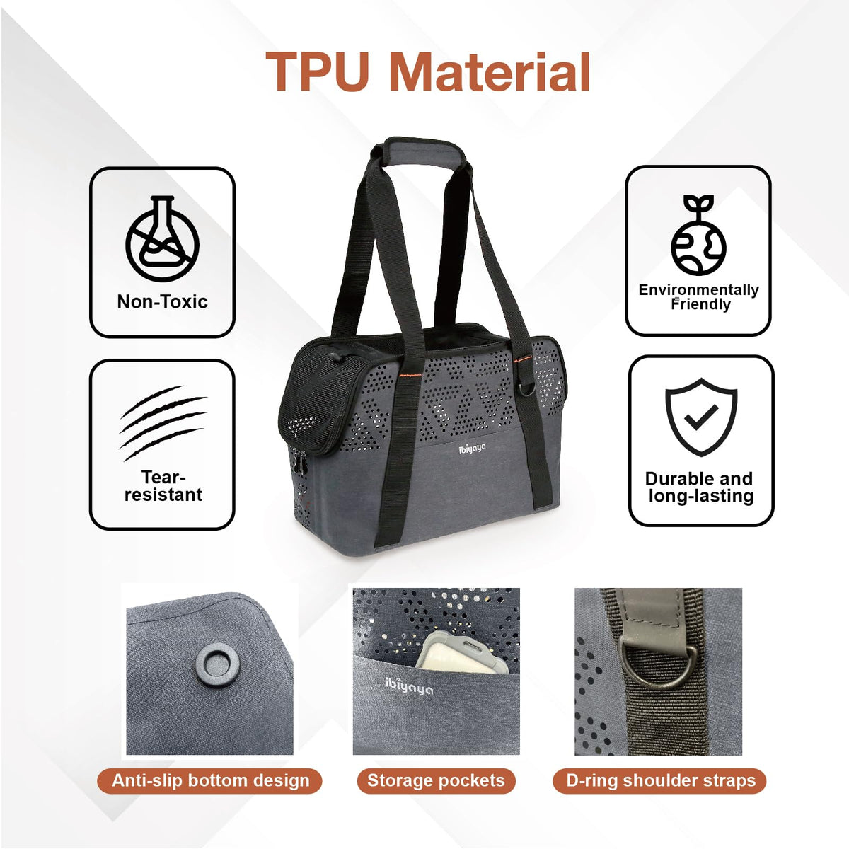 The Breezy Wanderer Fur-Free Pet Tote Bag Combines Style, Convenience, And Durability For Your Pet'S Travels. Crafted Using The Innovative Radio Frequency (Rf) Welding Process, It Boasts A Smooth, Fur-Resistant Surface And An Ultra-Lightweight Design At Just 540G. Its Retro Aesthetic Is Highlighted By A Perforated Floral Pattern And Timeless Monochromatic Color Palette, While The Sturdy Tpu Construction Withstands Extreme Conditions. Stability Is Key; The Bag Maintains Its Shape, Providing A Spacious Interior, Enhanced By An Enlarged, Versatile Opening.