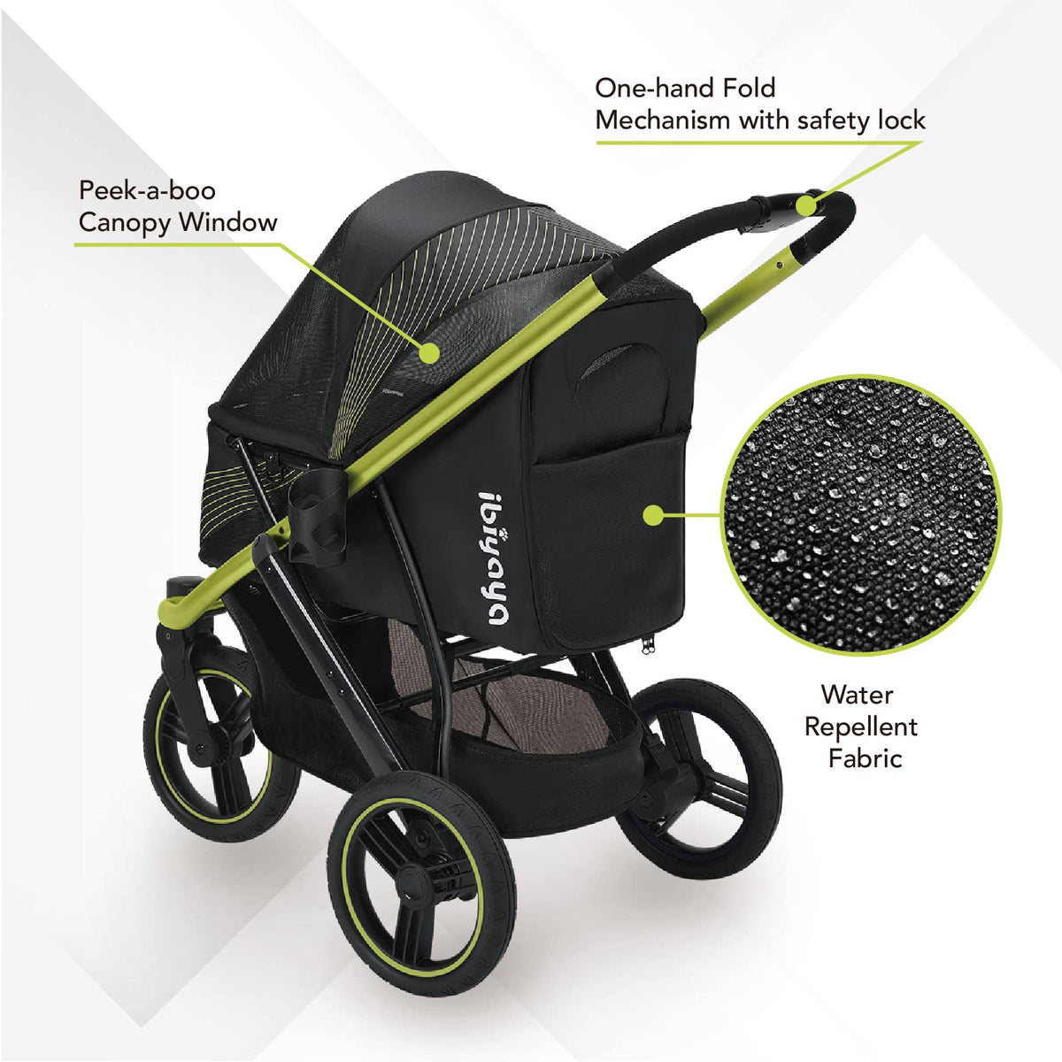 Ibiyaya The Beast Pet Jogging Stroller For All Terrains, 3-Wheel Dog Carrier With Double Breaks, Zipperless Large Stroller For R