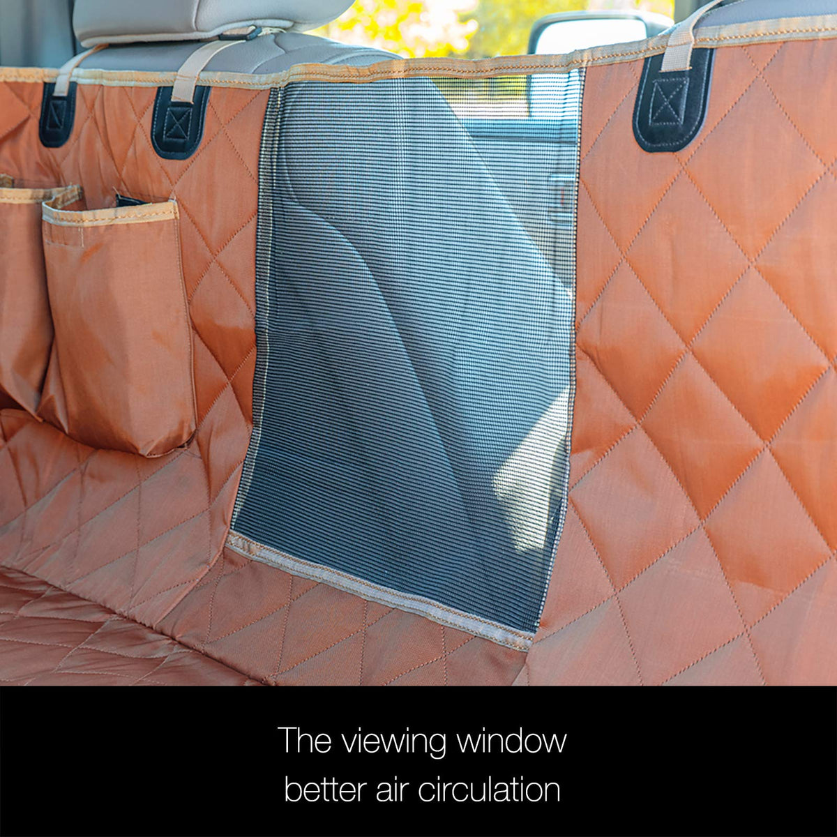 MESH WINDOW-Waterproof dog car seat cover with mesh window is great for the AC to flow into the back to keep your dog cool and warm. The visible window allows the dog to see you helps to reduce the pup 's anxiety. Using thick mesh avoid tears from the dog.